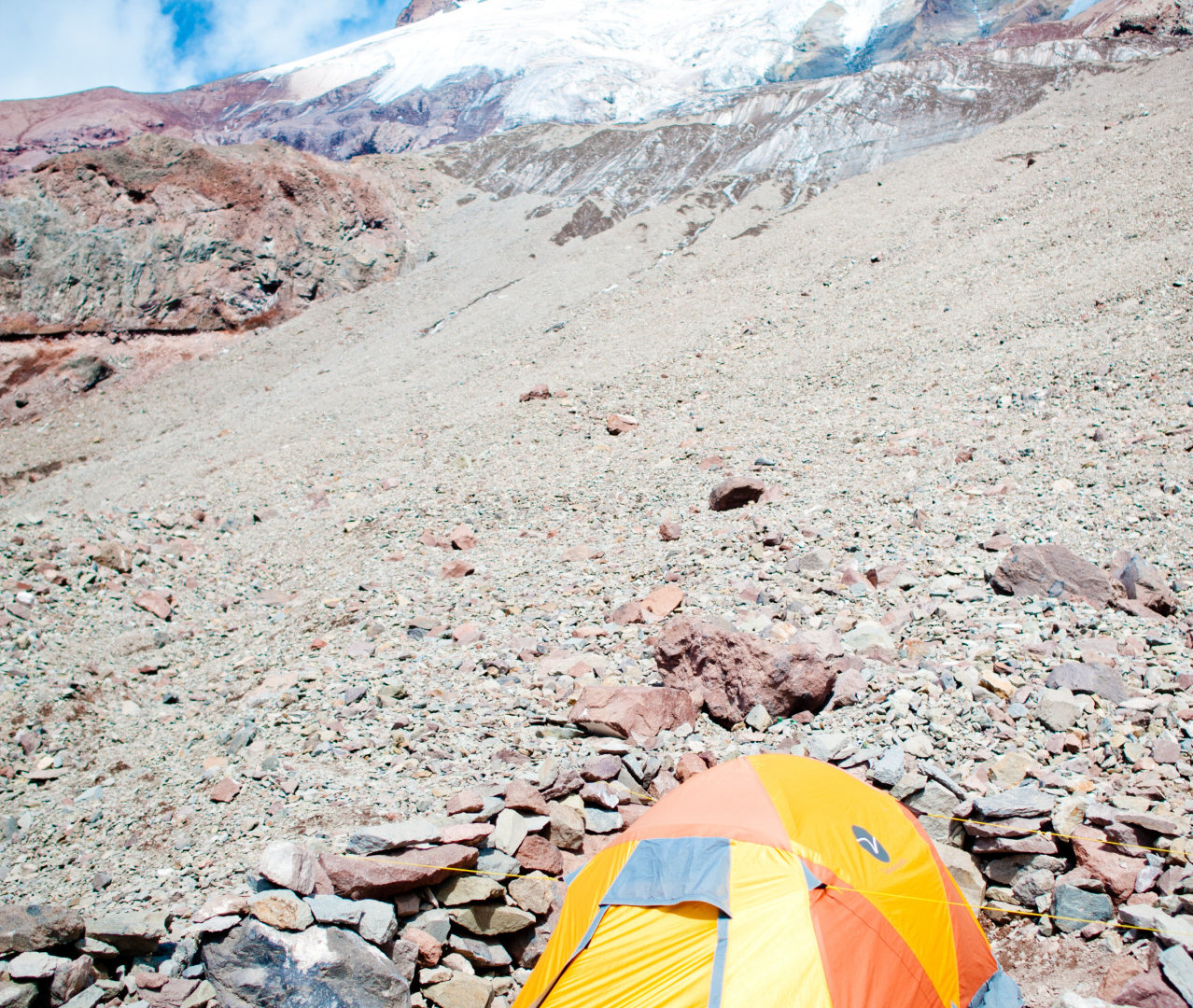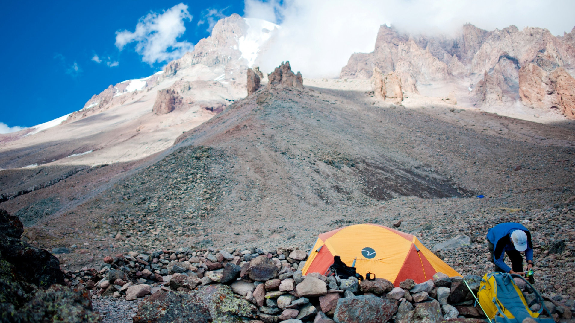 Для акклиматизации лучше одну ночь провести тут, а потом уйти дальше по тропе — там еще есть площадки для палаток, и на вершину оттуда идти ближе.