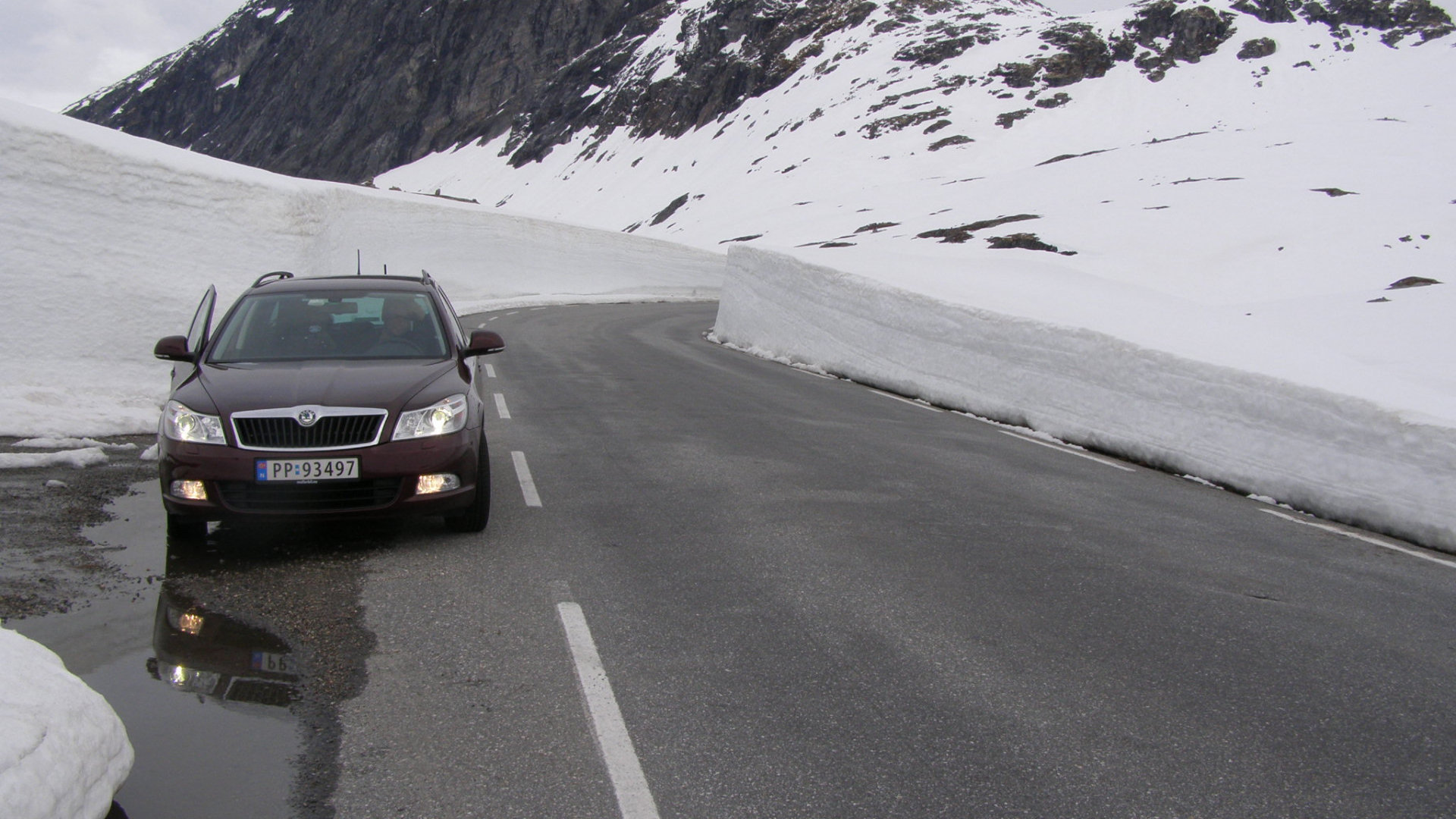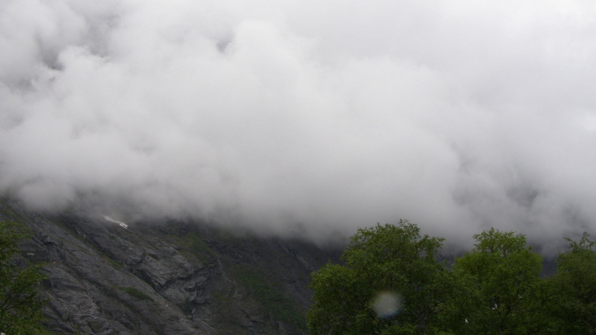 Ничего., ничегошеньки не видно. Ждать? Может быть, но энтузиазм и азарт, с которым мы пробирались через ливень на Прекестолене и шли в облаке и по снегу на Кьераг, кончились. Стоять и ждать, когда разойдется облако, было не приемлемо, самолет улетал в Мадрид через три дня, у нас впереди еще был путь в Молде к атлантической дороге и путь обратно, ну и, наконец, мы планировали посмотреть Осло. Впереди нас ждет еще множество интересного. Посовещавшись, тронулись в Олесун.