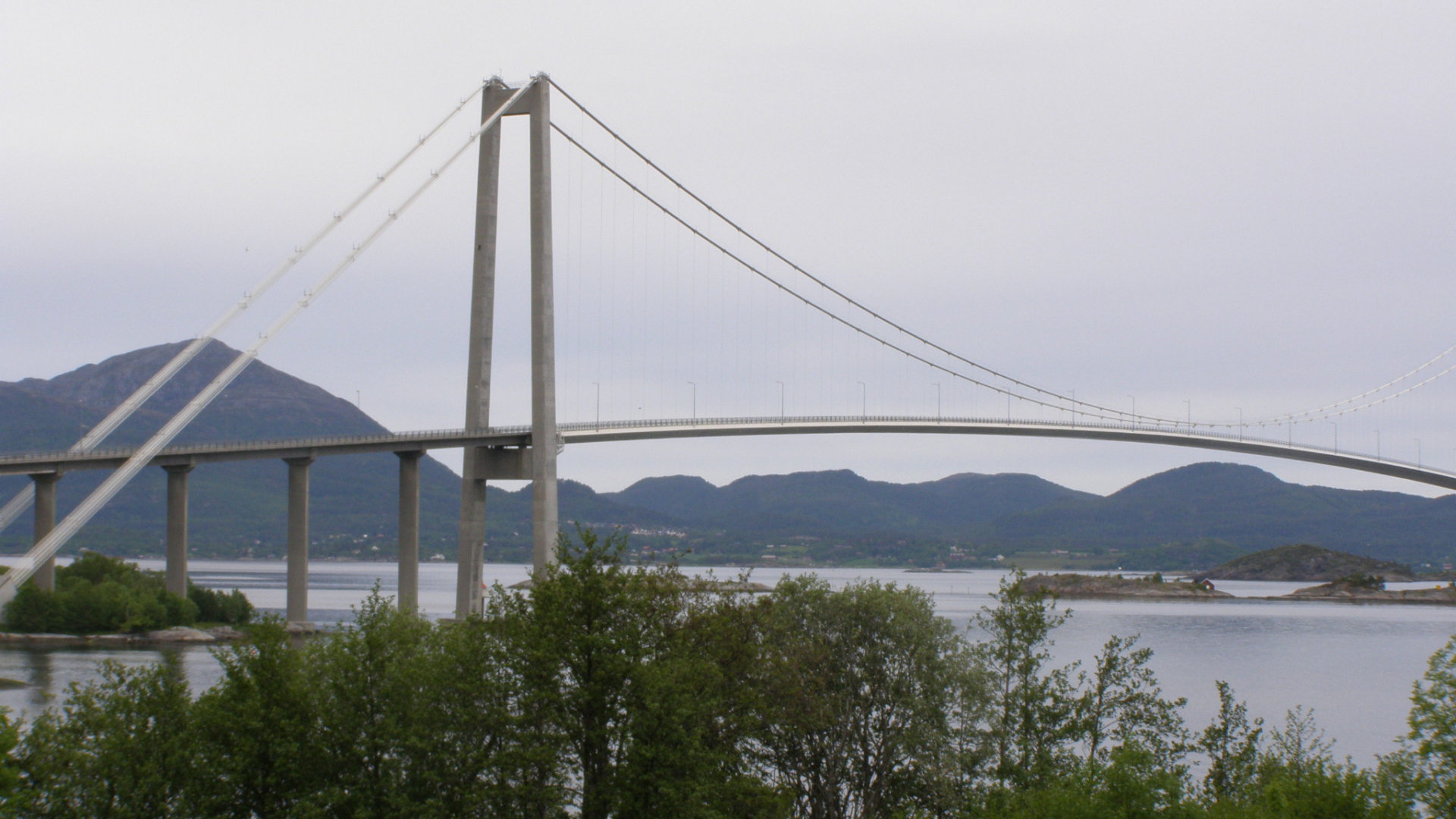 Выехав из Кристиансунда, начались так всем изрядно поднадоевшие туннели. Выскочив из одного, мы увидели красоту, висячий мост.