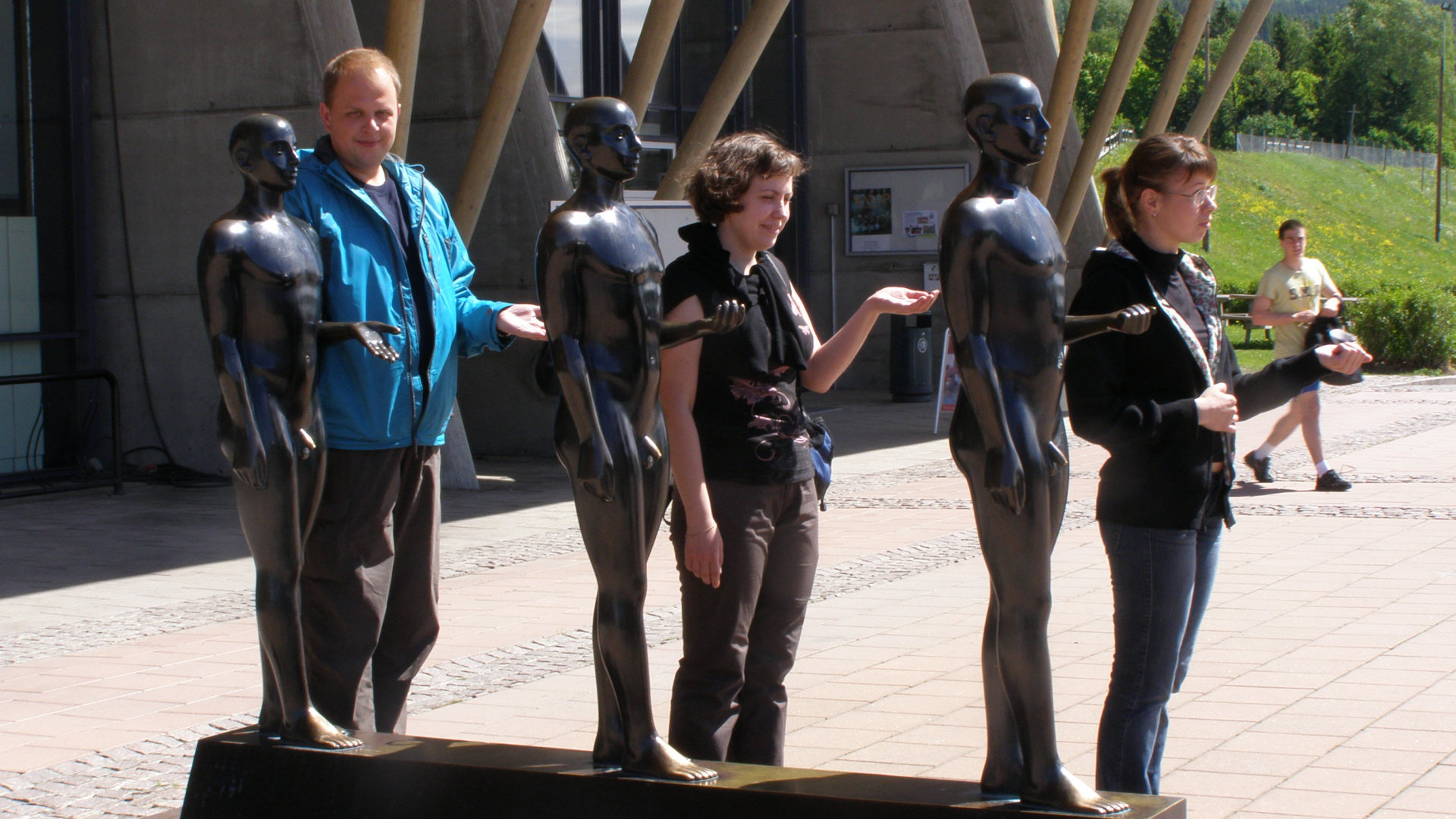 Народ фотографируется, лазая и подстраиваясь к обнаженным фигурам, кто-то смело и откровенно, кто-то скромно.