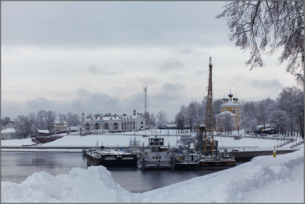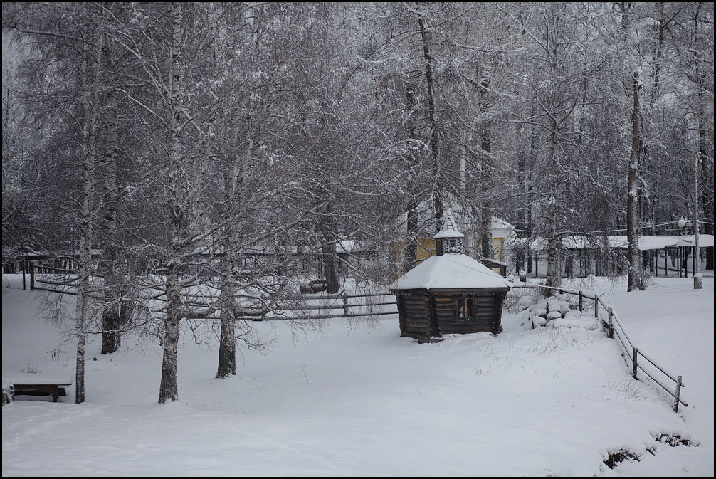 Надо сказать, зимой город не менее красив, чем летом, как бы даже не более: это самая натуральная русская зима, каковой ее представляет обычный столичный житель. Чистый белый снег, даже на дорогах, белые контуры черных веток, замерзшая река, тропки в глубоких сугробах, безлюдье, тишина...