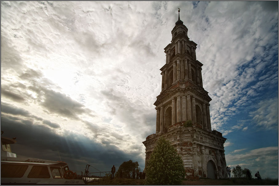 После чего группу погрузили в автобус и отправили в Калязин. Там погрузили на теплоходик, довезли до знаменитой колокольни, покатали часик по Волге и отправили обратно в Москву.