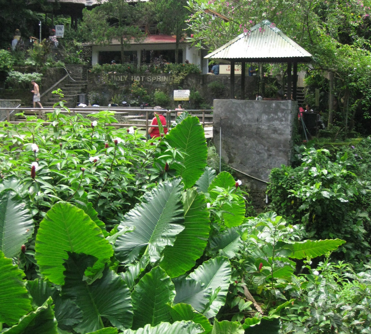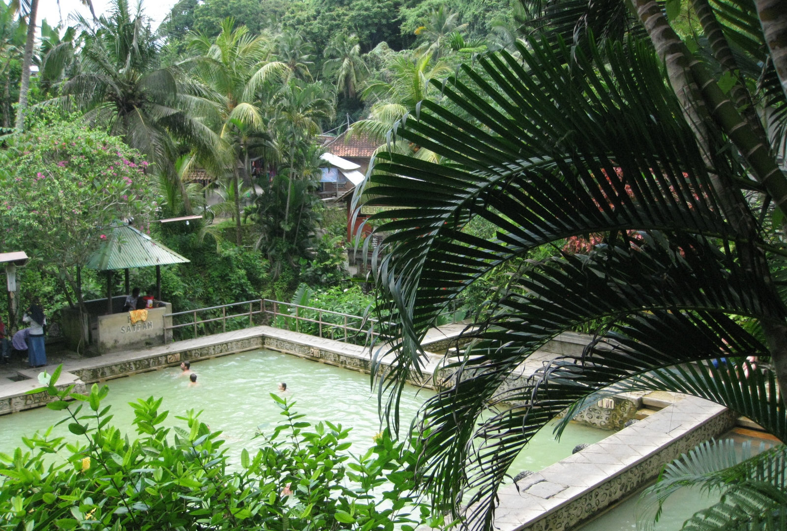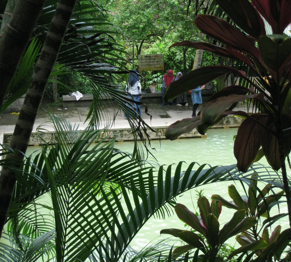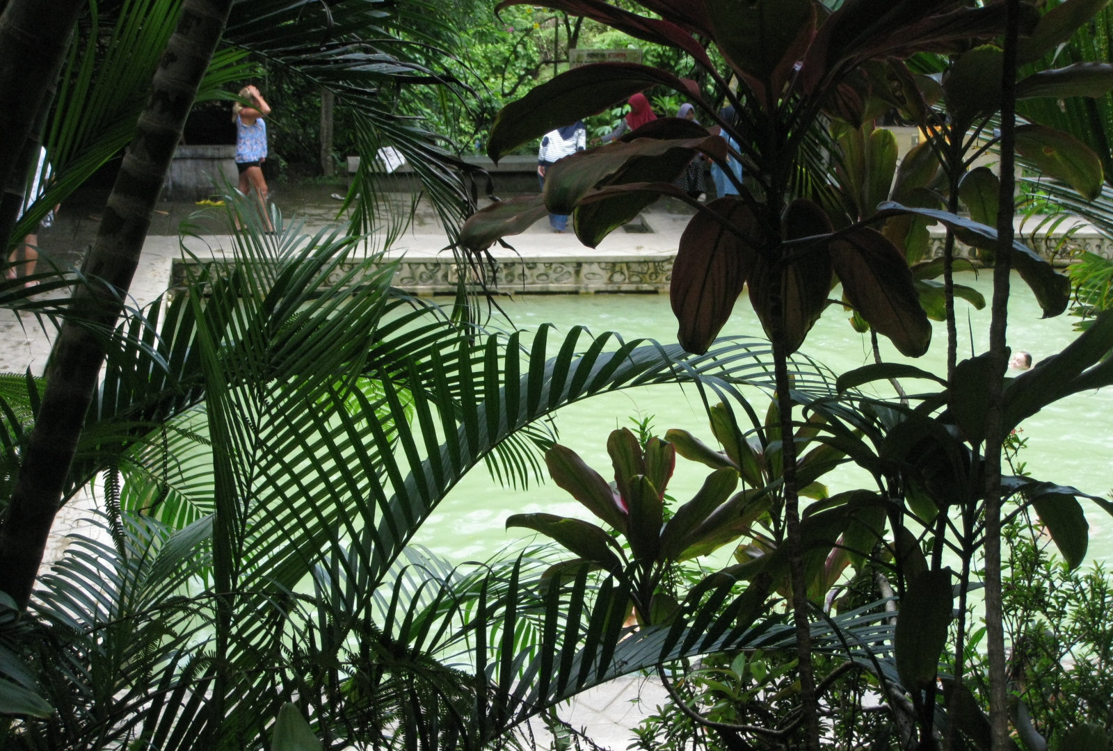 Большой бассейн с зелёной горячей водой и куча народу в ней-вот так я и запомнила местные источники.