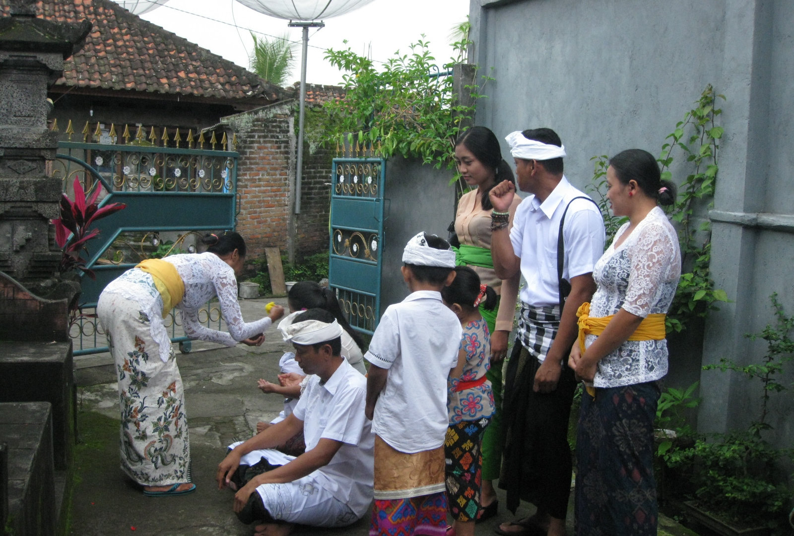 Когда я вернулась с прогулки, все уже были нарядные. Мужчины были в белых саронгах , на головах-уденг (кусок ткани, сворачиваемый определённым образом). Женщины-в праздничных саронгах и кружевных кебайя.