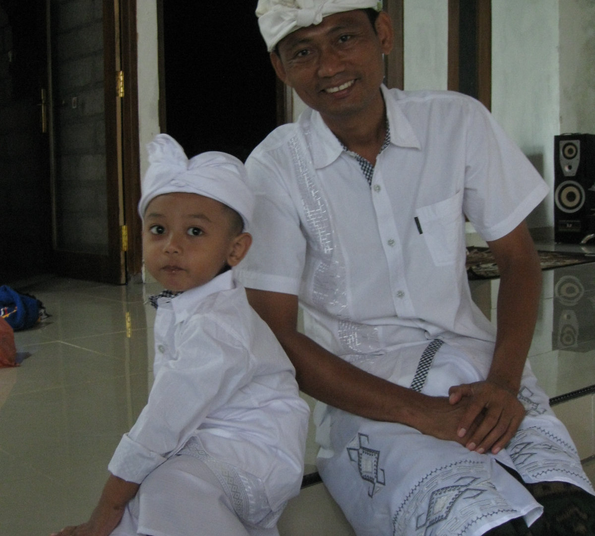Когда я вернулась с прогулки, все уже были нарядные. Мужчины были в белых саронгах , на головах-уденг (кусок ткани, сворачиваемый определённым образом).