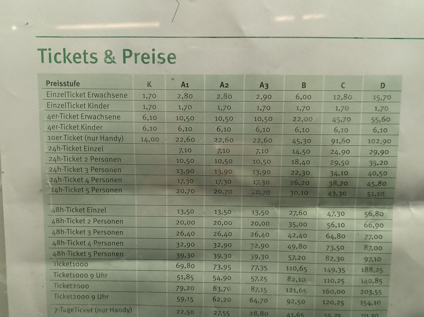 Случилось и такое, что единственный аппарат на платформе оказался неисправен, не удалось купить билет. Ехали свои 3 остановки в нервной напряжении, штрафы для безбилетников в Германии 60 евро ( на двоих это уже серьезная сумма). Как оказалось, необходимо было просто записать номер сломанного аппарата и если при контроле информация подтвердится, то можно будет оплатить стоимость проезда у контролера и не «дрожать» от стыда и страха...