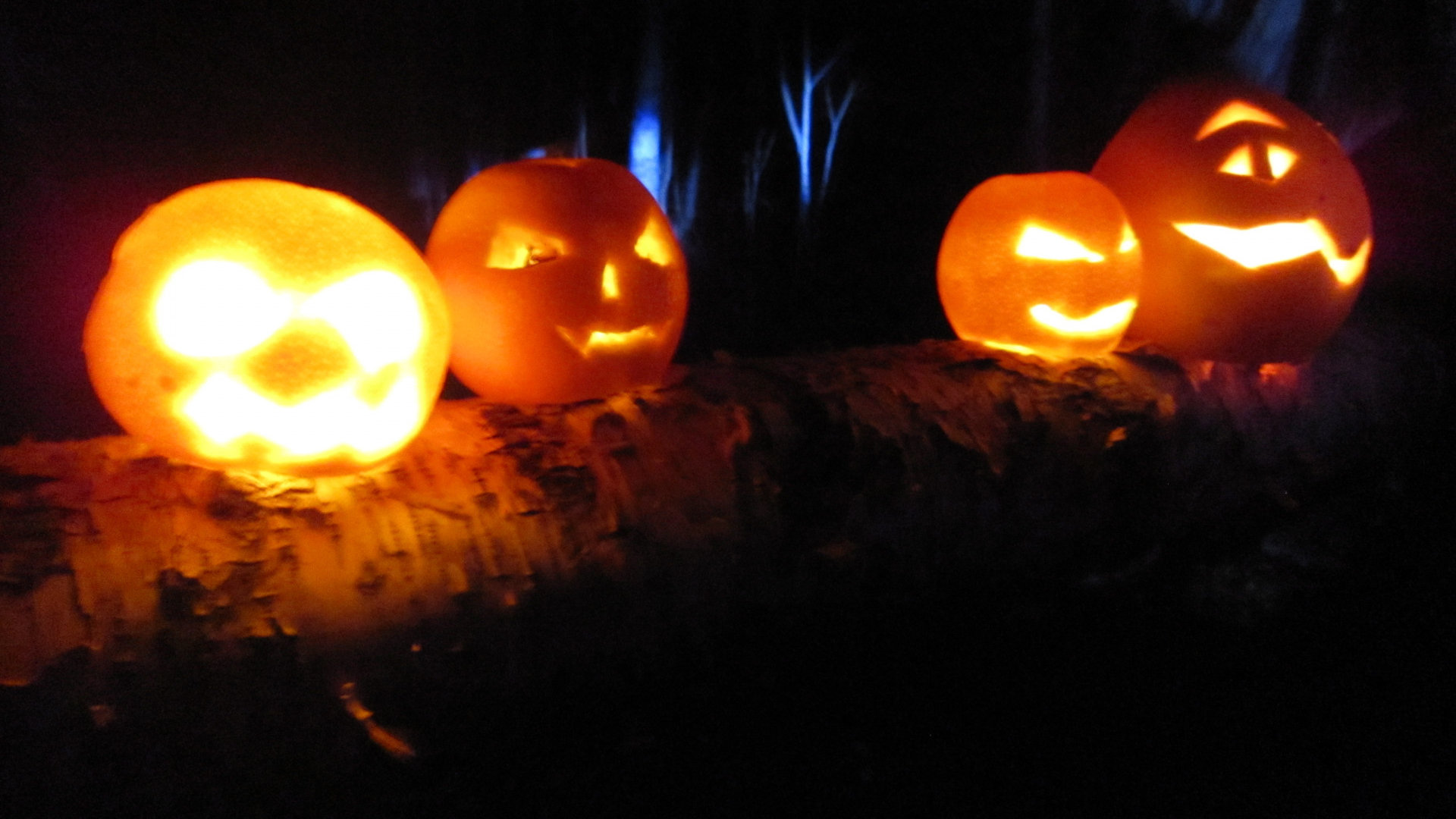 Сегодня Хэллоуин, разгул нечисти, но к нашему костру она подходить боится. Еще бы, у нас один шаман Никита чего только стоит! Тыкв я с собой не брала, но зато мы занимаемся резьбой по грейпфруту и апельсинам. С зажженными внутри свечами они выглядят вполне впечатляюще.