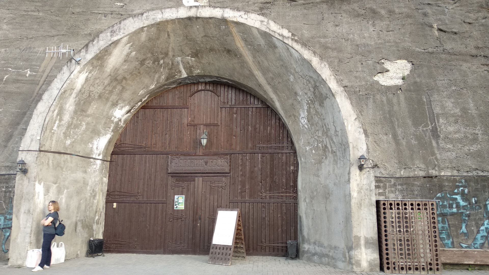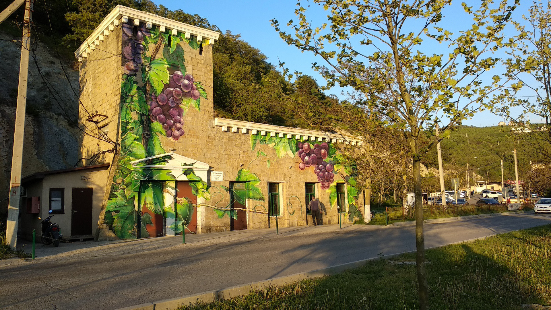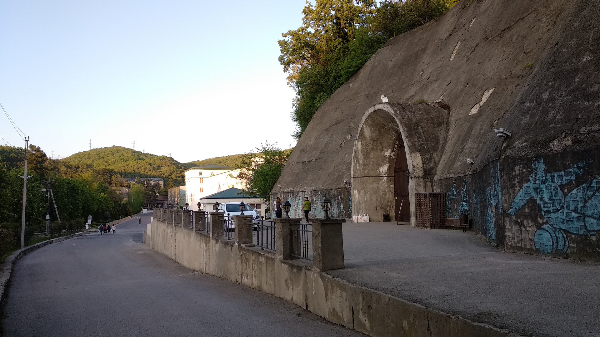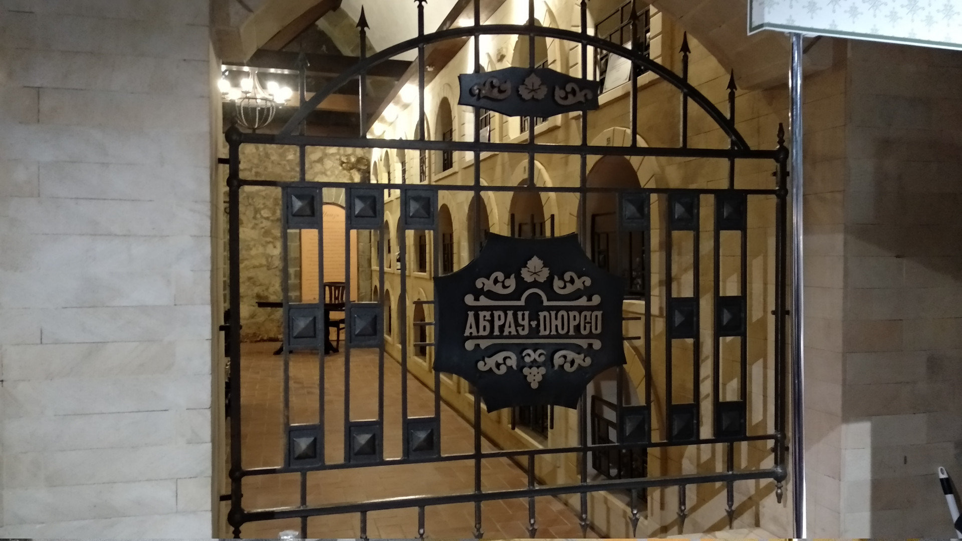 Когда катались на лодке увидели огромную дверь в скале. Оказалось, что это фирменный магазин, где продаются вина и шампанское марки «Абрау-Дюрсо». Очень колоритно.