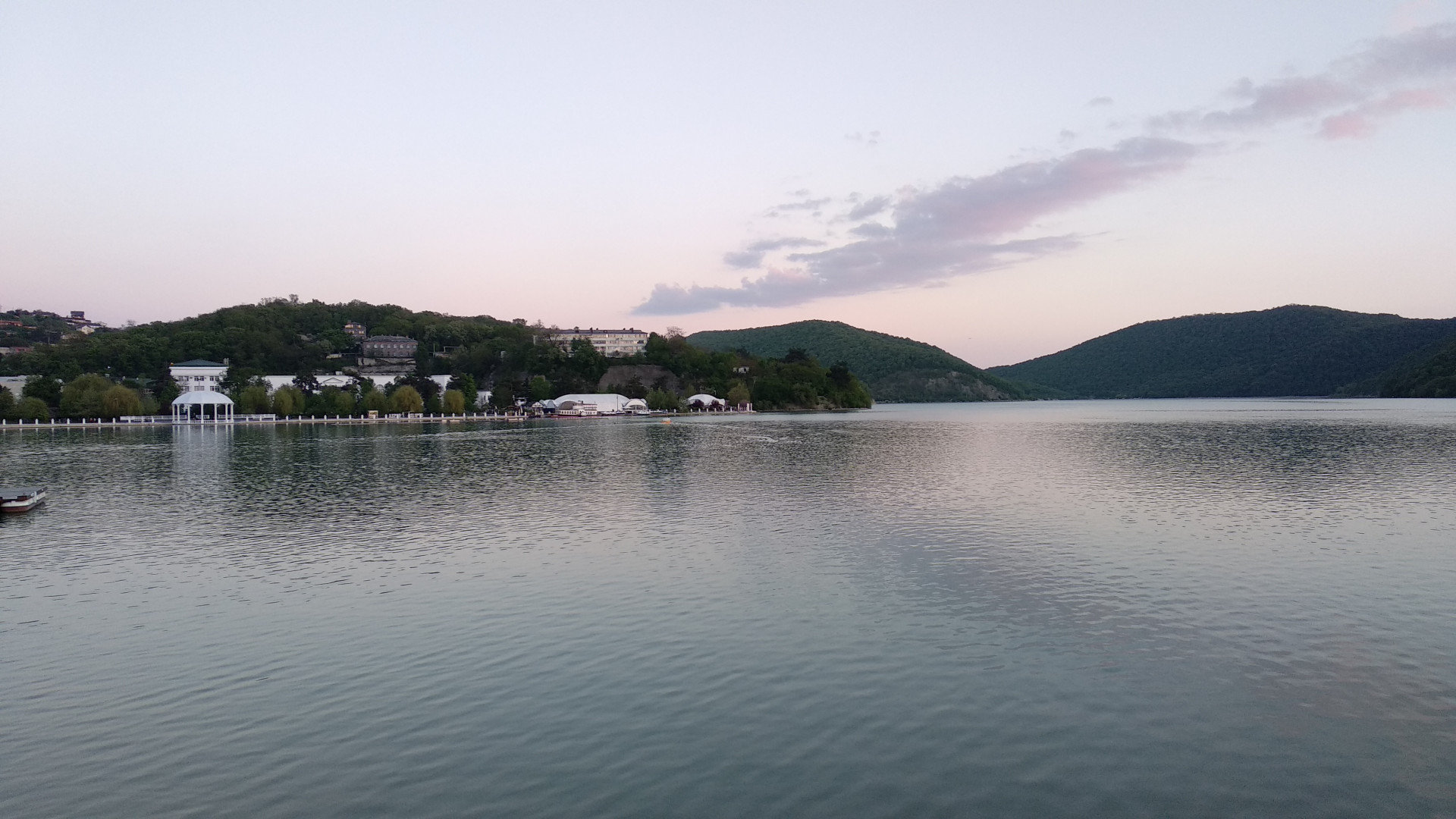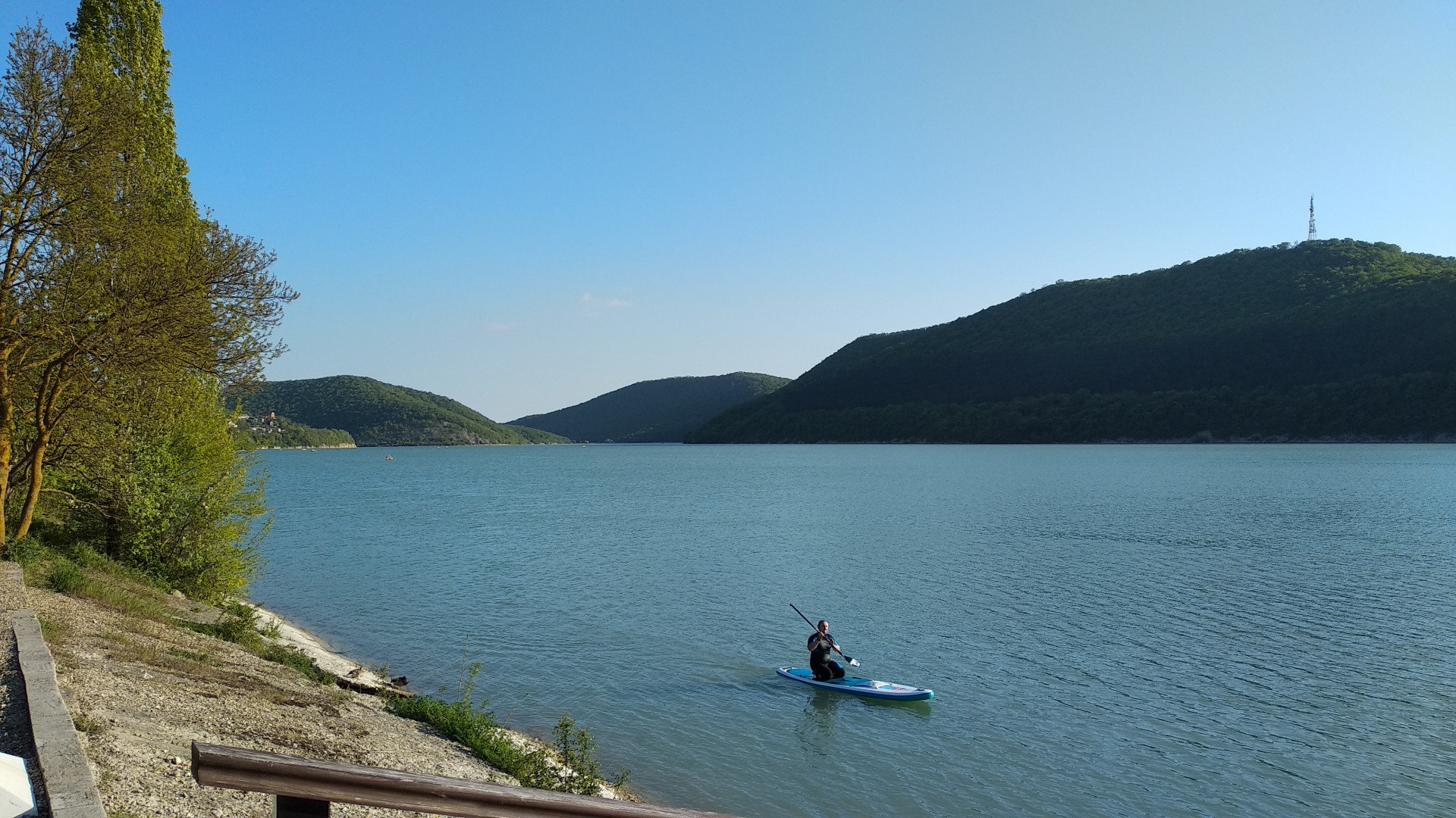 После заселения сразу же пошли гулять. Посреди деревни есть озеро, которое с одной стороны упирается в горы. На озере можно купаться, рыбачить и плавать на лодочках. На берегу есть очень симпатичное заведение по аренде лодок. Там все в морском стиле, очень приятный дизайн. Как и везде в Абрау, кстати. Там мы взяли прогулку на лодочке. Я не знаю как она называлась. И я ее не фотографировала, потому что сказали технику с собой не брать и в случае если утонем, тонуть без нее. Лодка была небольшая с парусом, без мотора. Плыли с помощью ветра. Я, мой спутник и капитан лодочки) Я тот еще интроверт и не учла, что на такой маленькой лодке придется общаться с водителем лодки (не знаю как правильно называется эта профессия ¯\_(ツ)_/¯). Человек был приветливый и плыли мы хорошо. Лодка очень подвижная и быстрая. Правда в мае было холодновато из-за ветра. Но без ветра мы бы никуда не уплыли. :) Повторять бы прогулку втроем с незнакомцем я бы, наверно, не стала, а вот поучится плавать под парусом самостоятельно было бы интересно. Там есть и такая услуга.