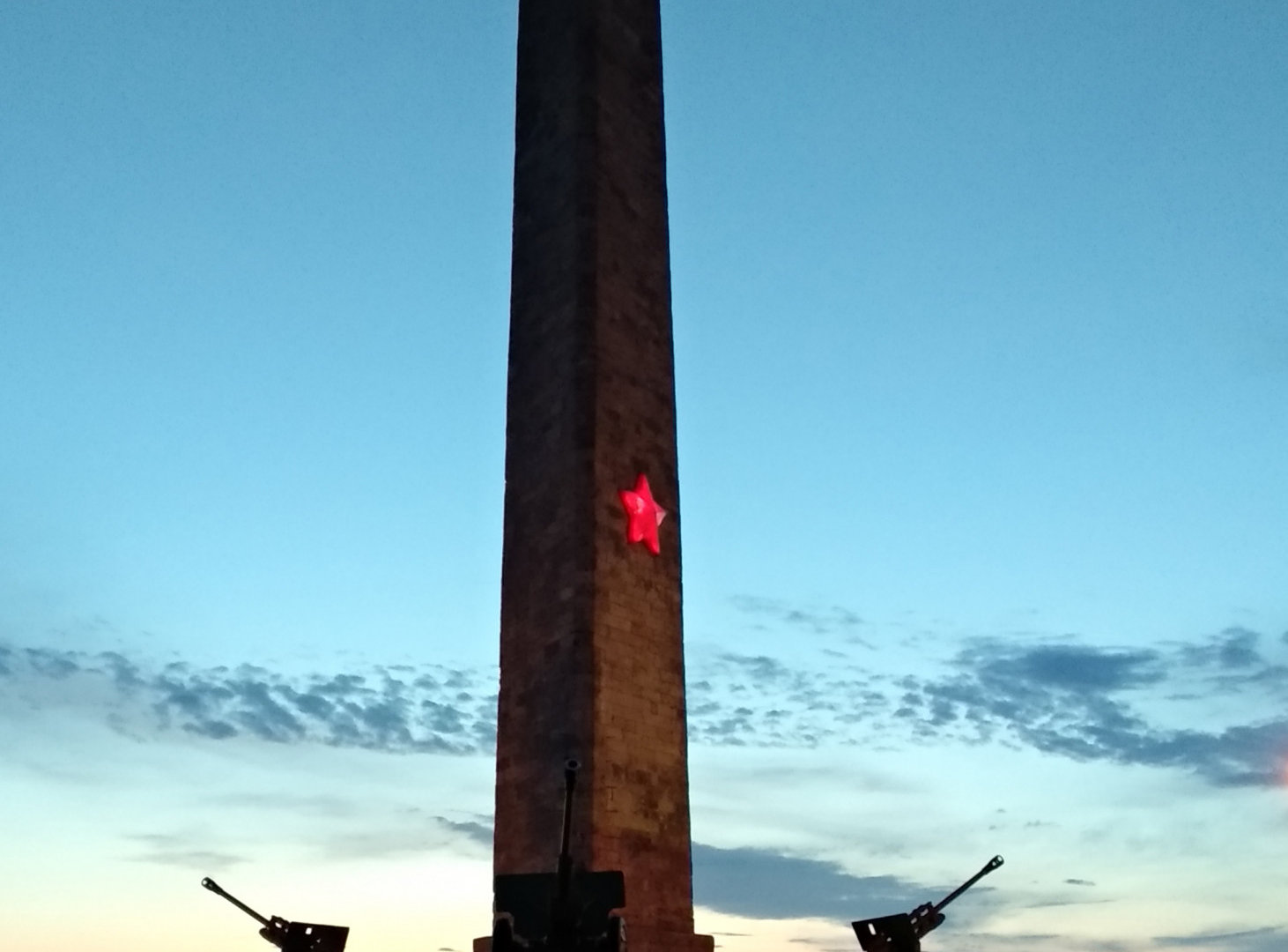 На самом верху стела, памятные таблички городам-героям, маяк и красивый вид вниз.