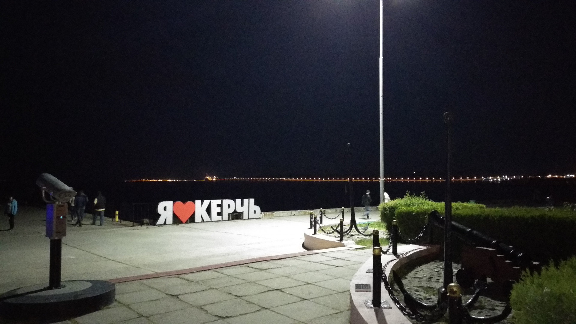 В Керчь ехали по крымскому мосту. Хотя Крым теперь вроде как Россия, въезд туда все равно с досмотром. Мост длинный, ровный и с хорошим видом.