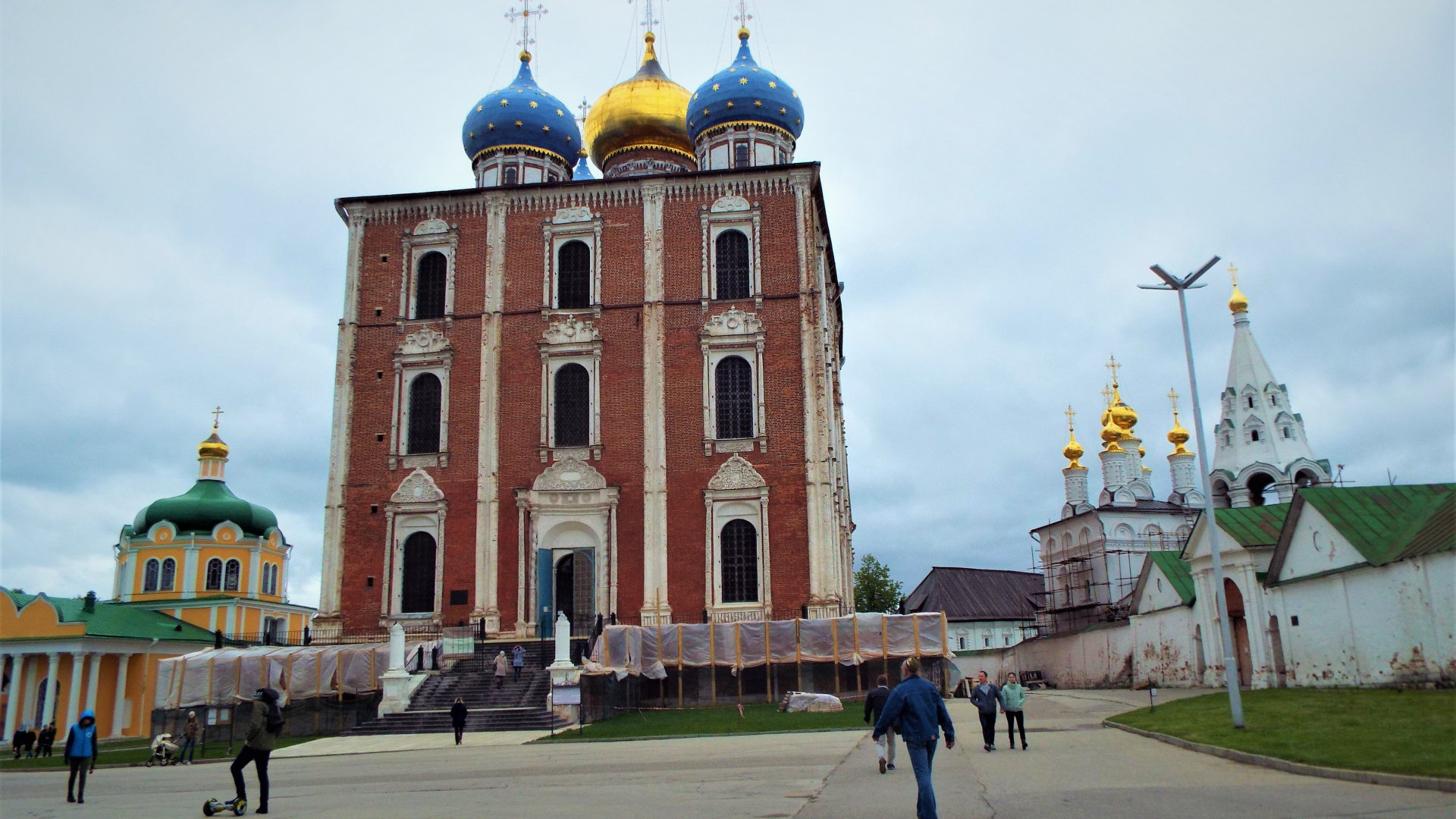 При въезде в город мы, честно сказать, немного заблудились. Наш навигатор дал сбой. Мы поплутали по улицам, ища по указателям путь к сердцу города — Рязанскому Кремлю.