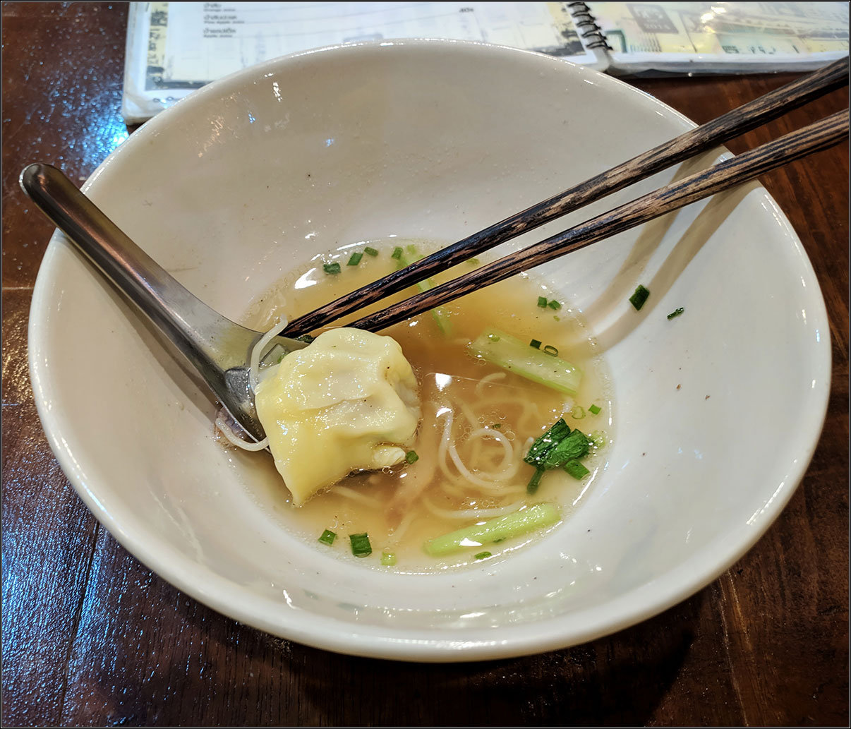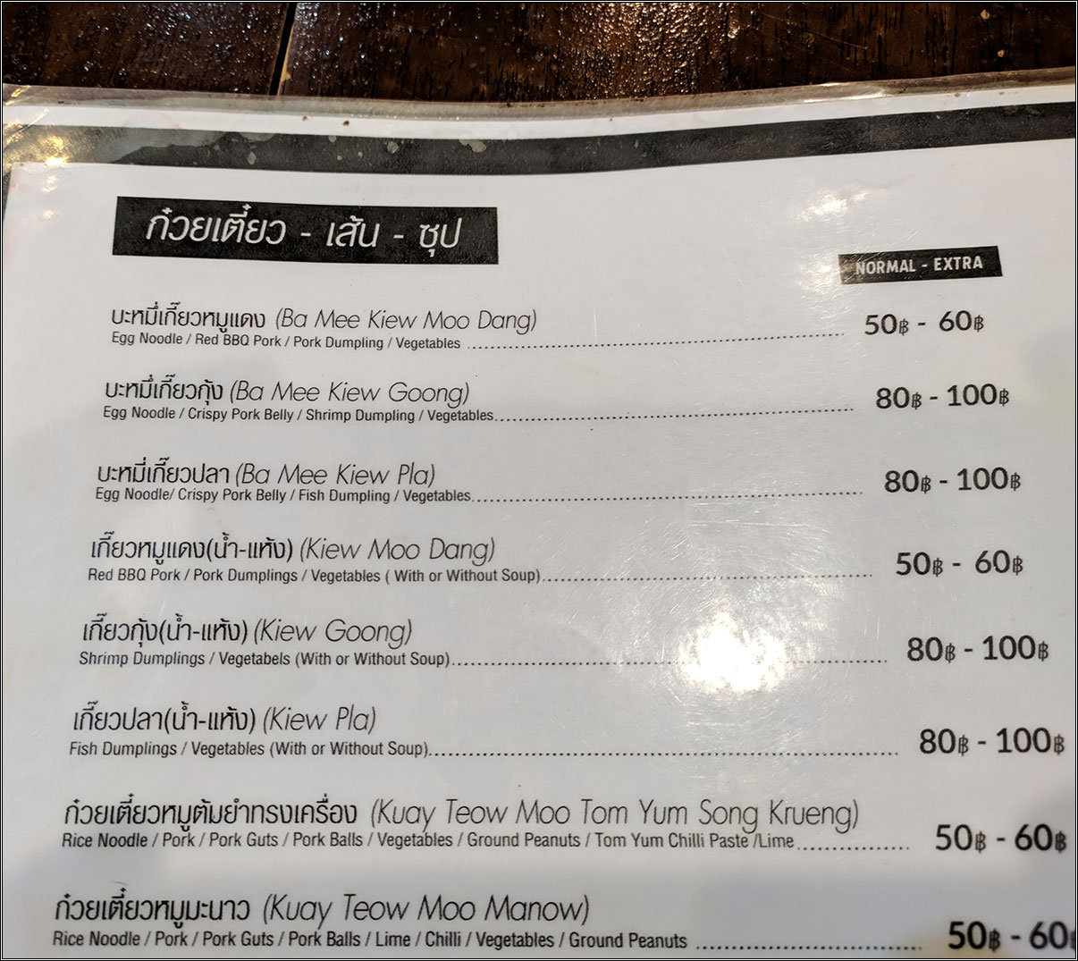 Любимая местная кафешка на Клонг Муанге. Первая строчка в меню. О качестве пищи там лучше всего говорит то, что я вспомнил о фотке, только когда в тарелке остался последний пельмень:)Хозяйка меня узнала, обрадовалась, сама мне все принесла, расспросила, надолго ли приехал, как жизнь, и что там в Москве. Тайцы вообще отличаются удивительной памятью на лица: ты можешь приехать на какой-нибудь остров всего на три-четыре дня, потом вернуться через пару-тройку лет, и тебя будут в отелях, кафе и мотопрокатах называть по имени сразу с порога. Был у меня такой опыт.И это, возможно, одна из причин того, что я сюда регулярно возвращаюсь:)