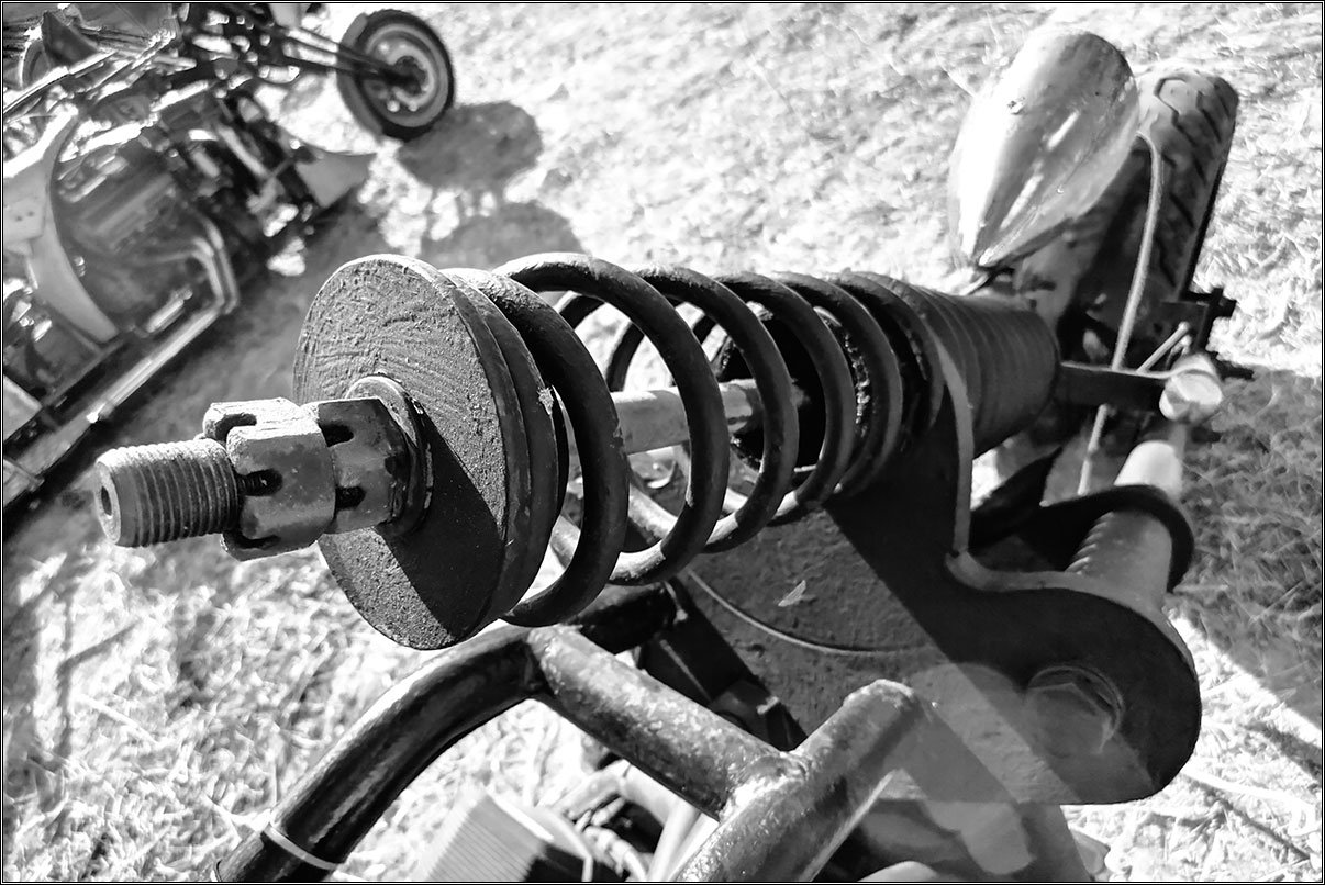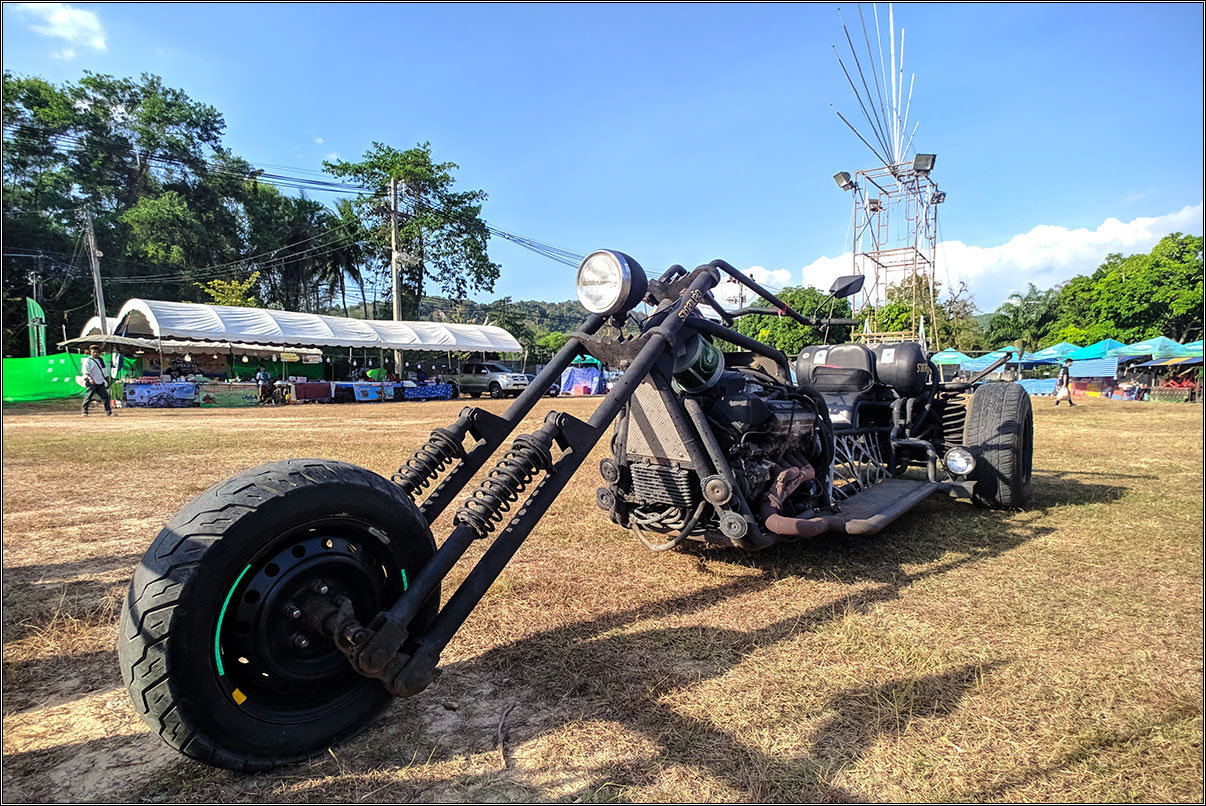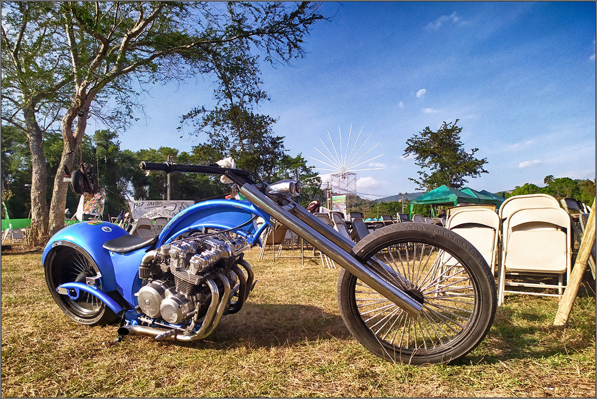 Еще когда дом искали, видел на дороге толпы байкеров на самодельных чопперах, трайках, и тюнингованных харлеях. А оказалось, что у нас тут байк-фестиваль проходит. Заглянул вчера к ним, пофотографировал образцы кустарного дизайна.