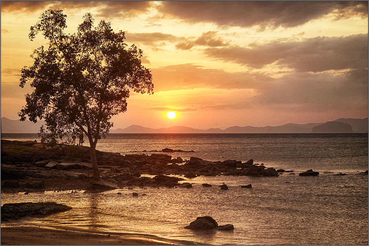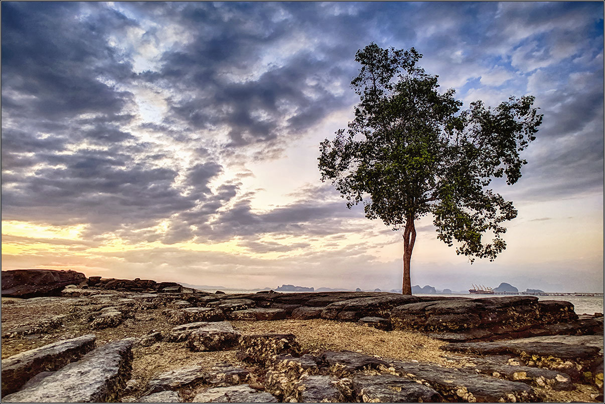 Вечером вышли посмотреть на закат.Это вот минусы того, что мы здесь уже дважды были: надо умудриться сфоткать то же самое дерево на тех же самых скалах так, чтобы фотографии хоть как-то отличались от картинок предыдущих лет.