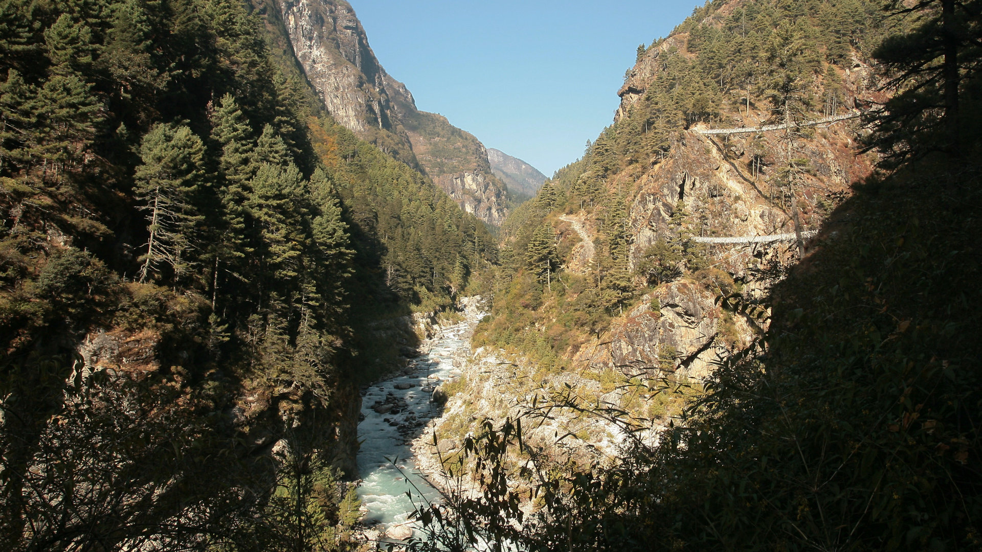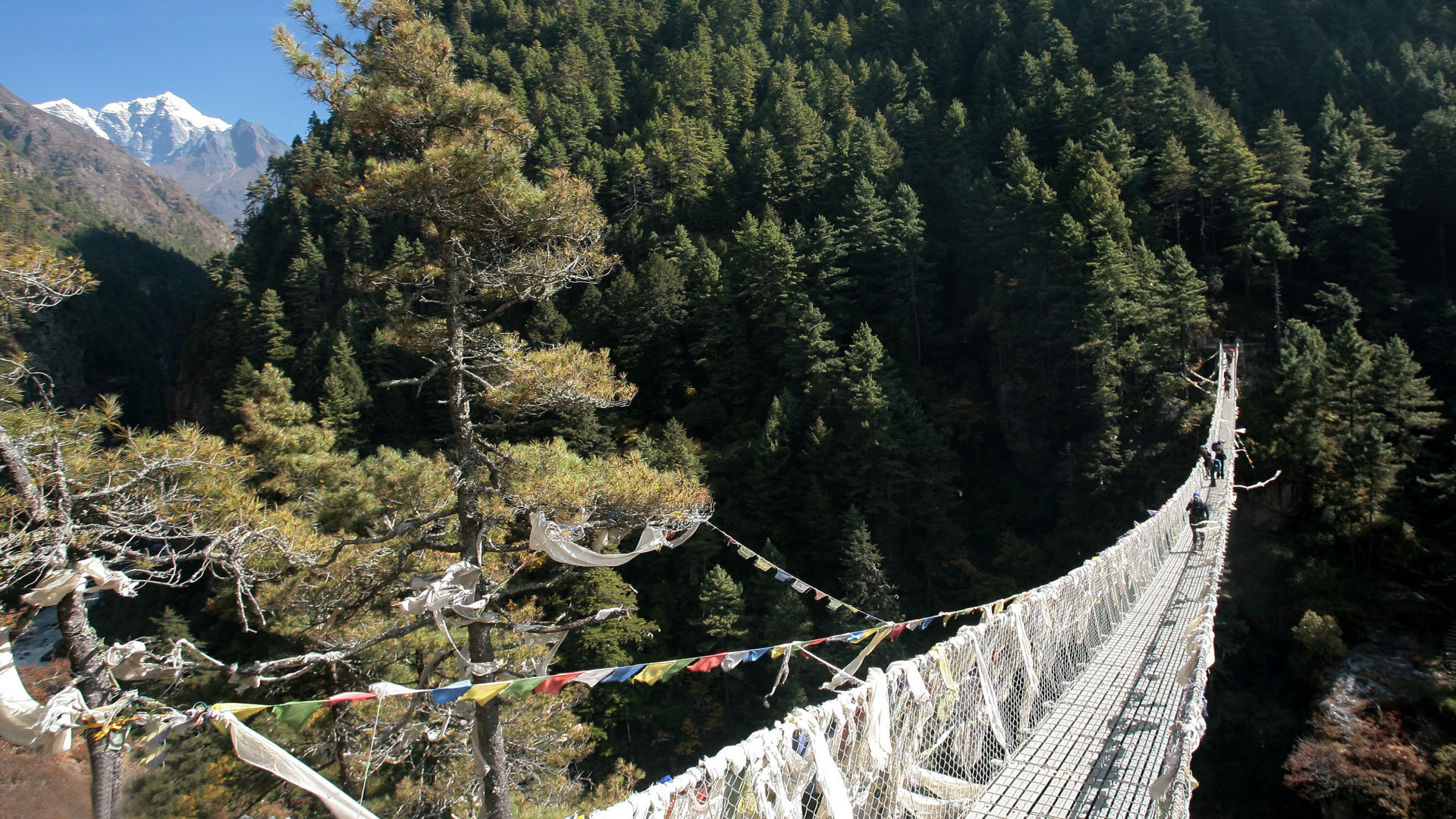 Намче Базар — столица народности Шерпа. Сюда туристы попадают на второй день своего путешествия по Гималаям через живописный навесной мост Хиллари.