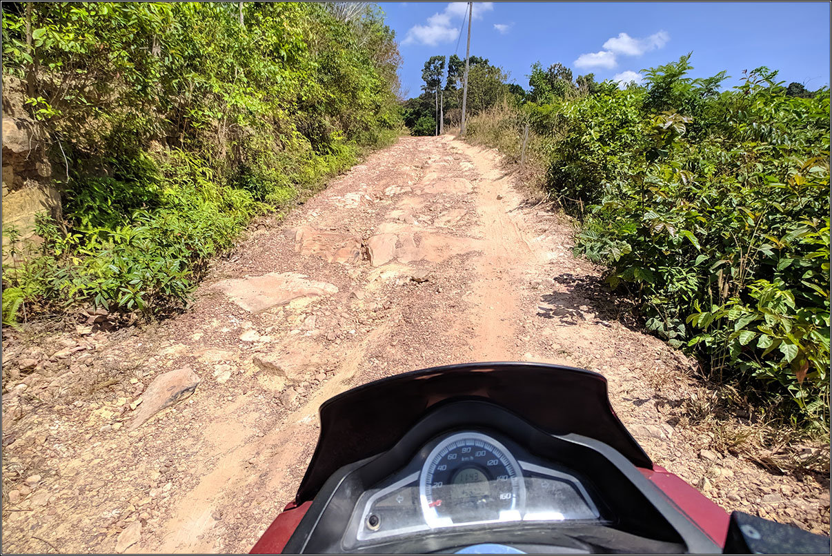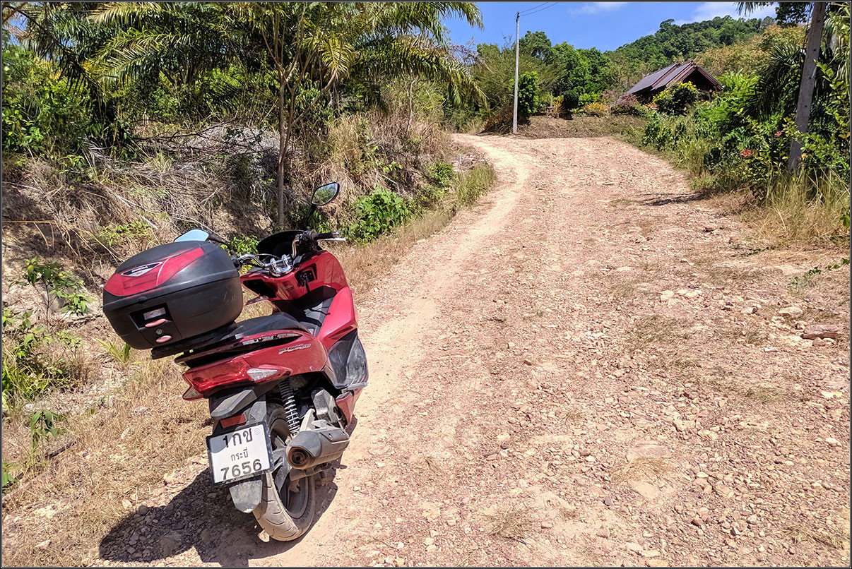 Свернул на очередную боковую дорожку. Сначала шла асфальтовая дорога, потом она сменилась грунтовкой и пошла вверх.А потом и грунтовка закончилась, началось дно какого-то каменистого ручья, сплошные валуны и колдобины. Но меня такой „дорогой“ не запугать, так что я сбавил ход и стал медленно, но упорно карабкаться в гору.