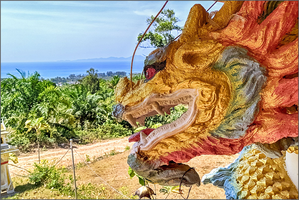 А еще дальше, уже почти на вершине, обнаружилась ровная площадка, а на ней — маленький китайский храм. Колонны, обвитые драконами, мелодично позвякивающие на ветру колокольчики, курительницы с ароматическими палочками, ветер и тишина...