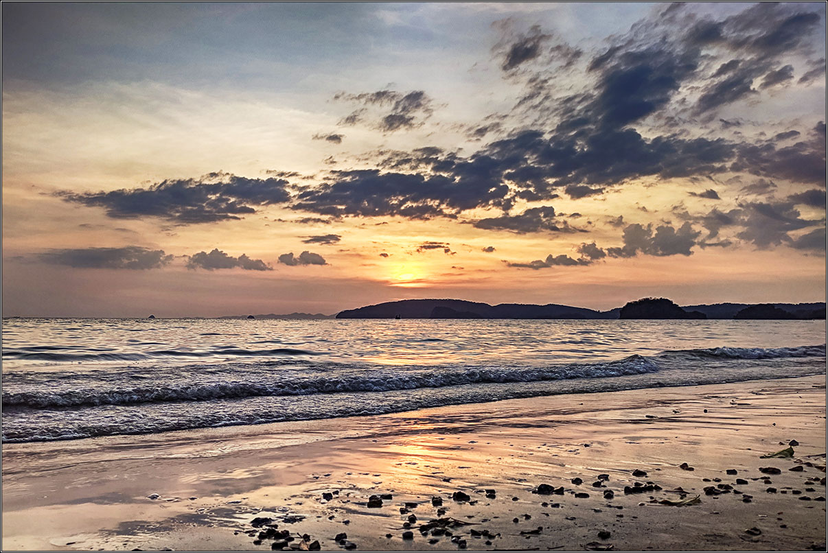 Ну и еще несколько свежих картинок — закат на пляже Ао Нанг.Мы туда стараемся особо не ездить, там туристов толпы, шумно и вообще walking street. Но тут встречались со знакомыми, посидели с ними в ресторанчике на берегу, наблюдали за садящимся солнцем и трепались о зимовках. У всех, кто любит пожить в Азии, масса впечатлений и воспоминаний о примерно одних и тех же местах: Таиланд, Индия, Шри-Ланка, Филиппины, Малайзия и далее по глобусу…