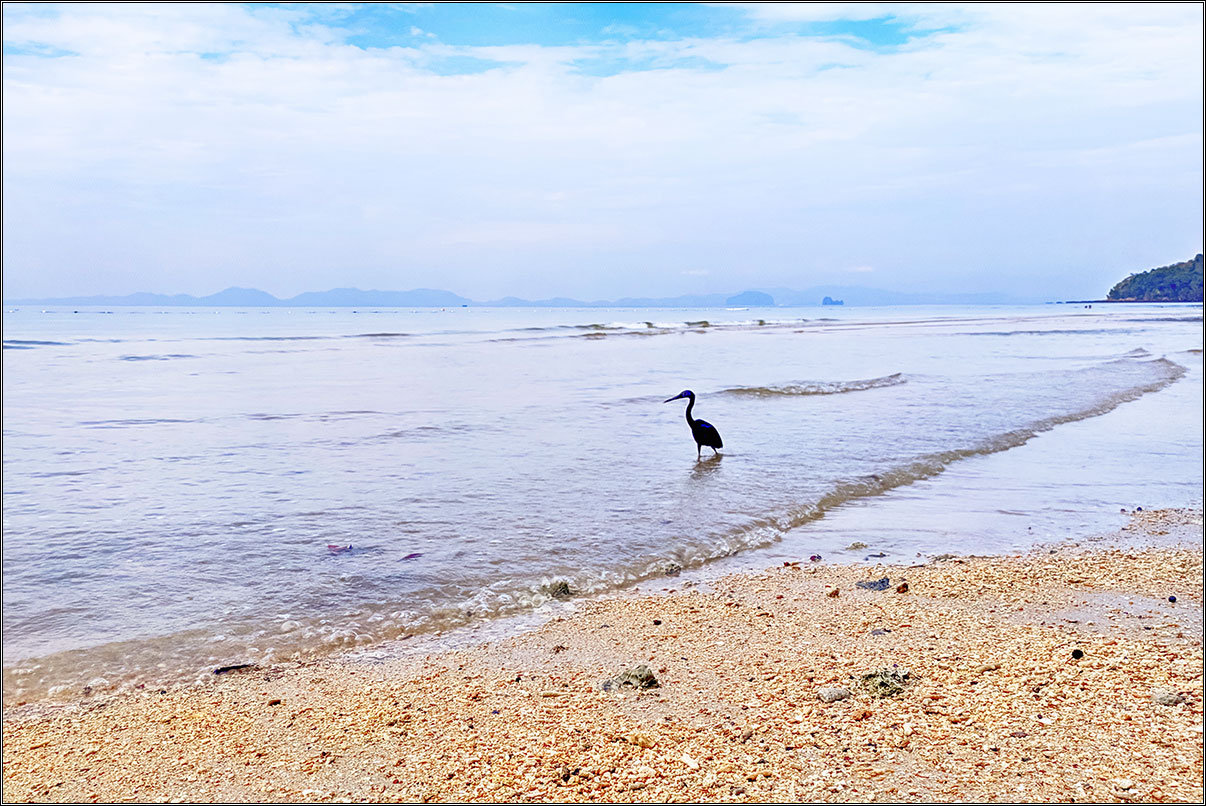 Раннее утро — самое прекрасное время здесь.Еще не жарко, на пляже почти никого нет, вода прозрачная и спокойная. Какие-то цапли ходят по колено в прибое, кормятся. Они тут настолько привыкли к людям, что даже не улетают — спокойно проходят мимо на расстоянии двух метров.