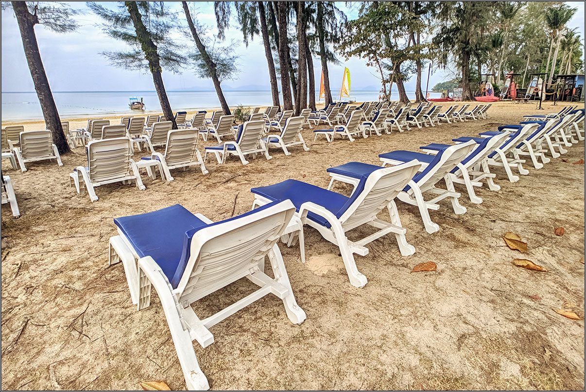 Даже шезлонги еще пусты, стоят ровными рядами лицом к морю, похожие на самый лучший в мире кинотеатр.