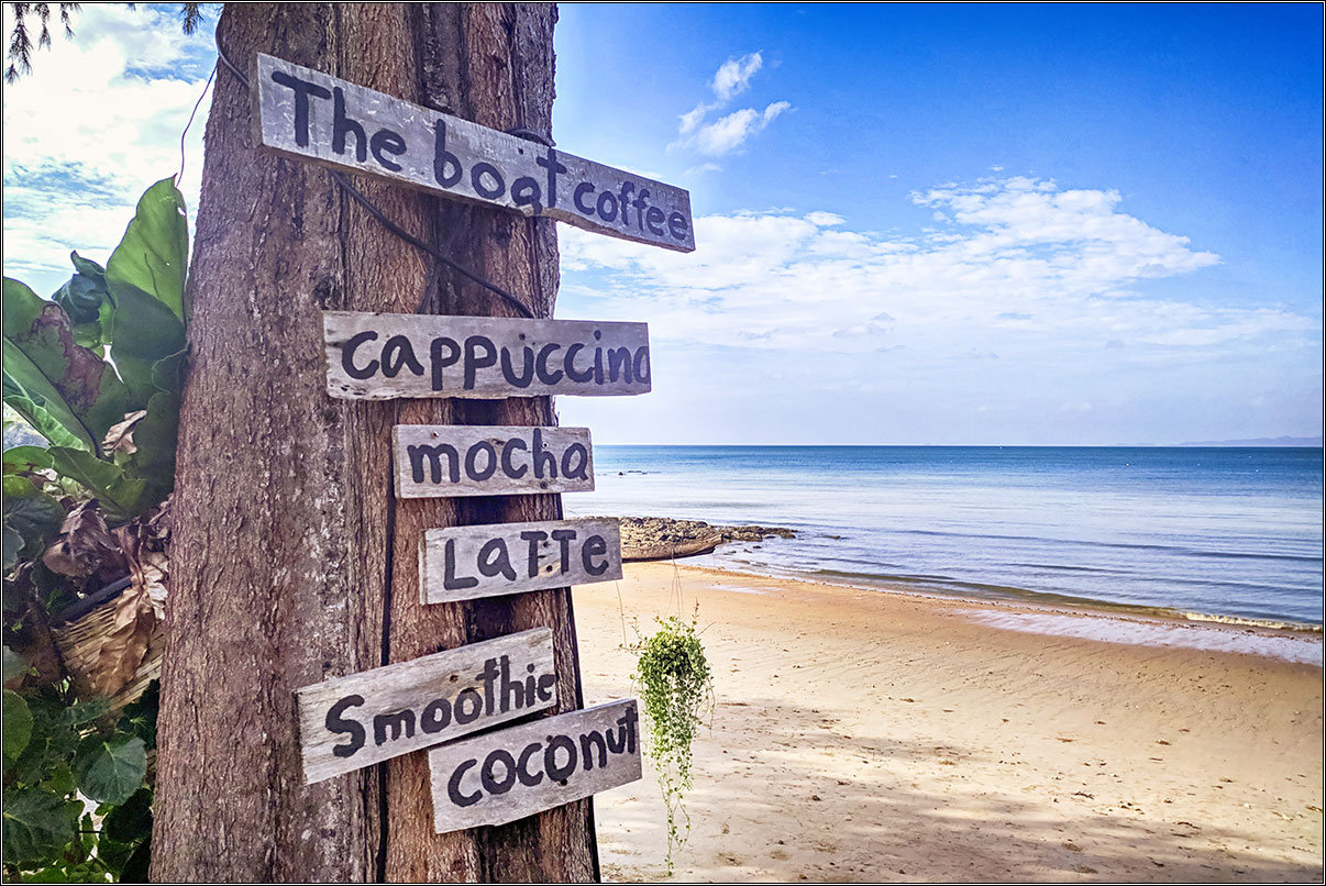 За те два года, что нас здесь не было, в Краби появилось много разных приятных заведений, в которые хочется зайти, выпить кофе, перекусить, и пофотографировать вокруг. Вот — The boat coffee, недалеко от нас, на Клонг-Муанге, по дороге «к принцессе».