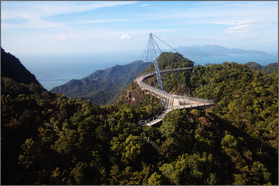 Остров Лангкави мы еще в 2013 году весь объехали на байке, поэтому знали, что смотреть там особо нечего, кроме Sky Bridge — одномачтового вантового моста в горах. Там действительно красиво, если попадете на Лангкави — надо обязательно съездить. Рядом — деревенька Oriental Village, от которой ходит фуникулер на вершину горы. Оттуда открываются шикарные виды... но мы там уже бывали и все видели.