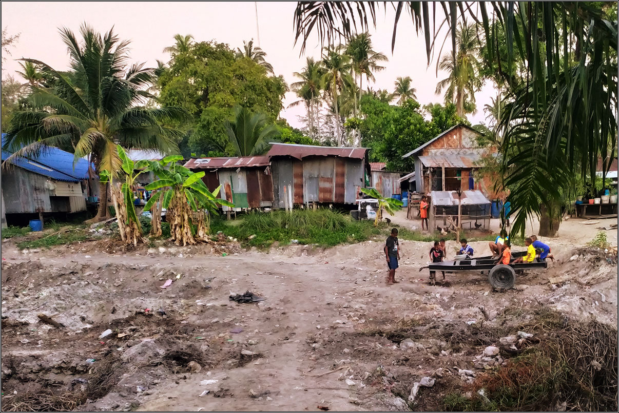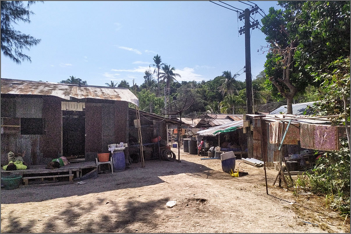 Ну, правда, в центре острова, из-за сильно разросшегося за последние семь лет туризма и необходимости в многочисленном персонале, появилась большая тайская деревня. В которой все как и положено тайской деревне — жуткого вида домики, грязь, спонтанные и централизованные помойки, тук-туки, куры, ржавые и старые мотобайки, брошенные где попало, все это воняет, пылит, и выглядит жутковато. А из-за крохотных размеров острова, мимо пройти не получится, куда бы вы не шли. Впрочем, это как раз очень похоже на обитаемые острова Мальдив, там все было примерно так же, только еще и без асфальта на дорогах.