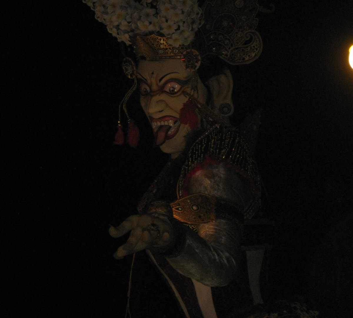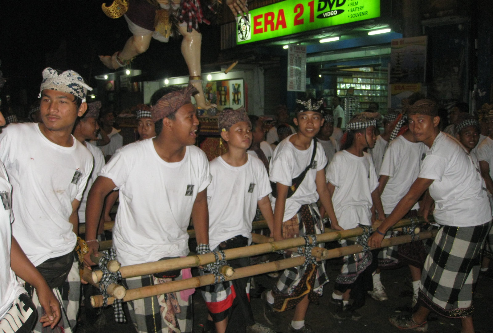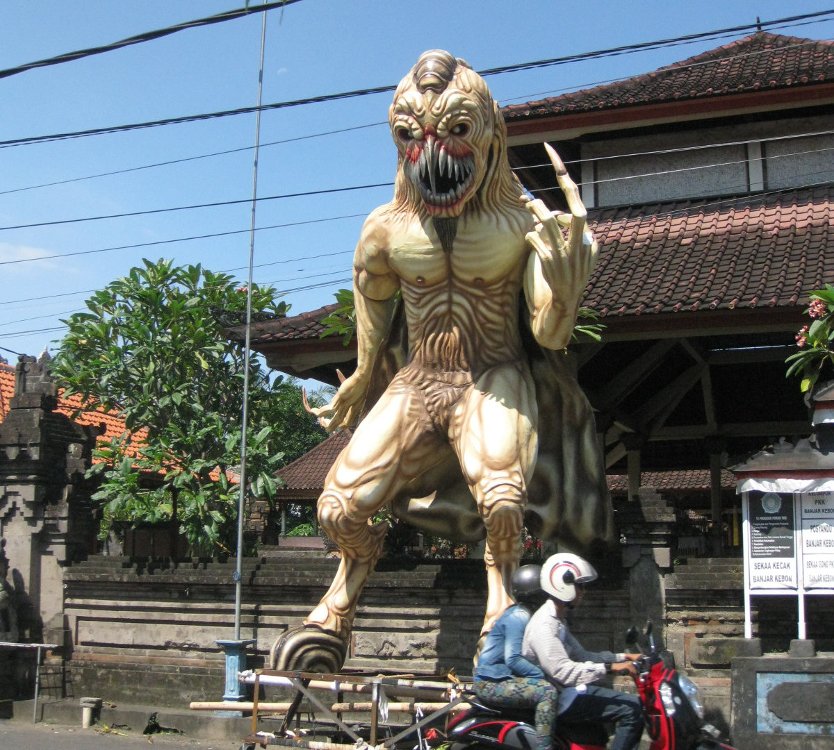 Новый год на Бали начинается весной. Отмечают его с размахом, с шумом, с песнями, с танцами, с фейерверками и с церемониями. А вечером улицы Острова заполняются жуткими огромными чудовищами Ого-Ого. Шествие чудовищ- неотъемлемая часть праздника. Гигантских чудовищ изготавливают несколько месяцев в каждой местной общине. Металлический каркас, бумага, картон, пенопласт, краски, ткани....Работа очень кропотливая. Некоторые чудовища копируются по описаниям из различных старинных легенд, но некоторые выглядят вполне современно.
