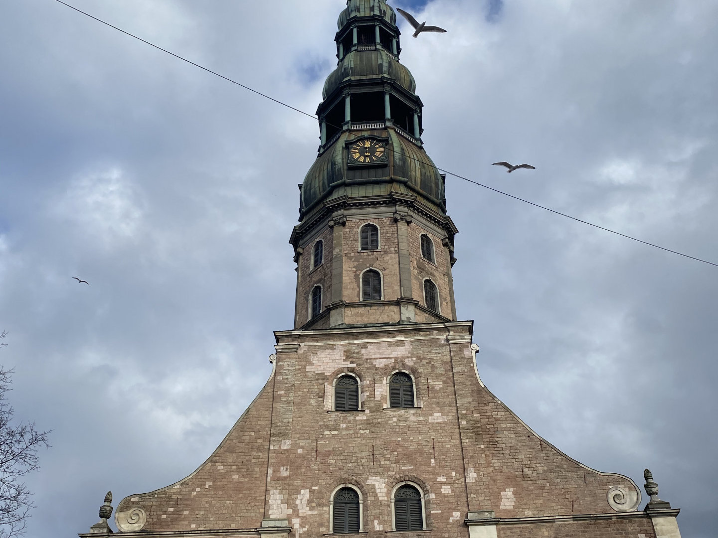 К самому Петру мы дошли довольно быстро и не особо петляя, но с какой то неожиданной стороны. Собор упирался зеленым шпилем в небо и в отличии от Домского был похож на готику. Средневековую рижскую.