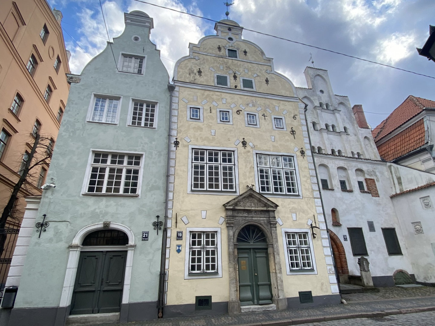 Тут принято угадывать какой дом самый старый. Правильный ответ: дом N17 — левый белый. Он, к слову, вообще самый старый сохранившийся в Риге жилой дом ( XV век). Вот не сказать, что я бы хотела там жить. В центральном доме расположен Латвийский музей архитектуры, но мы не заходили.