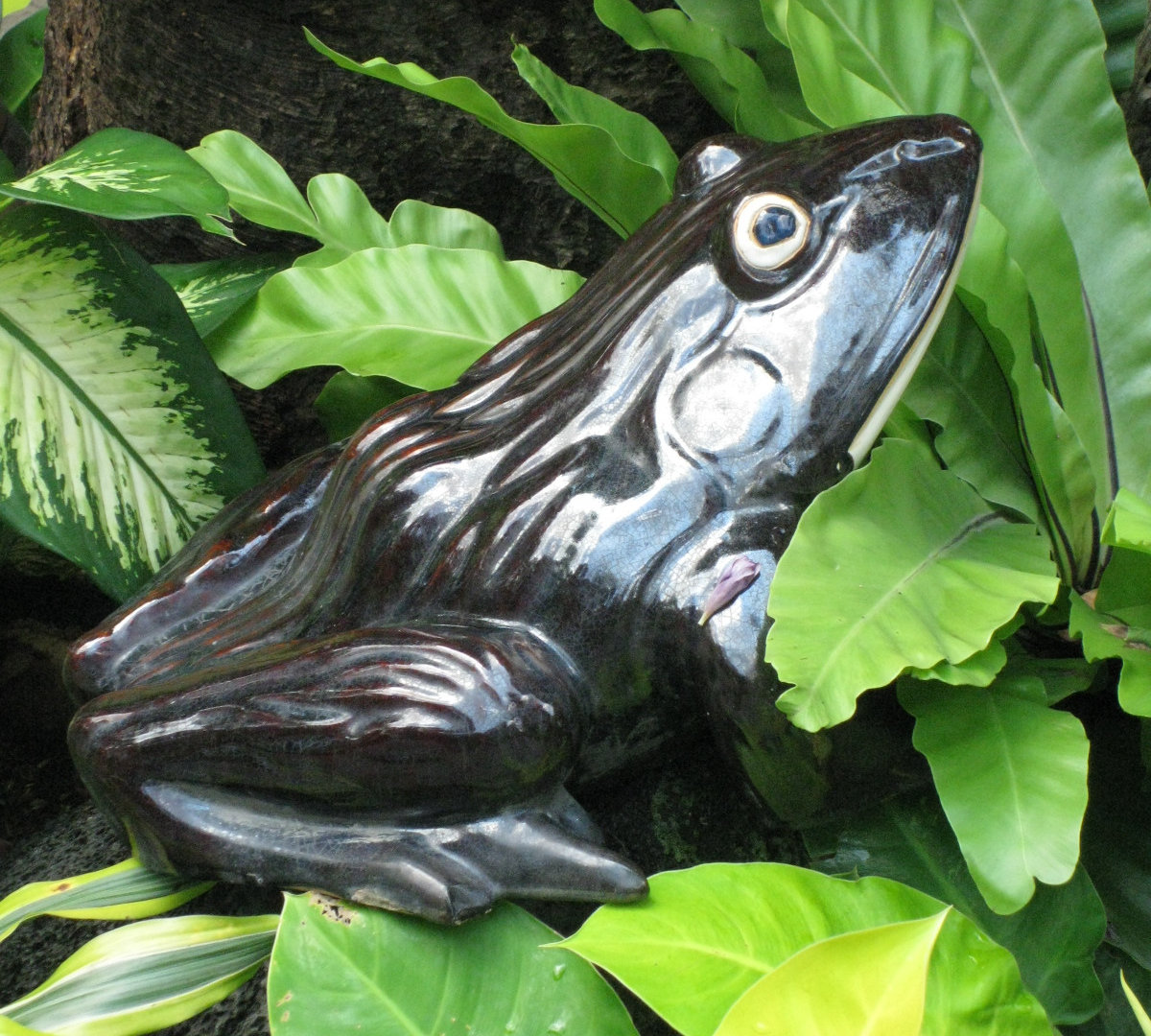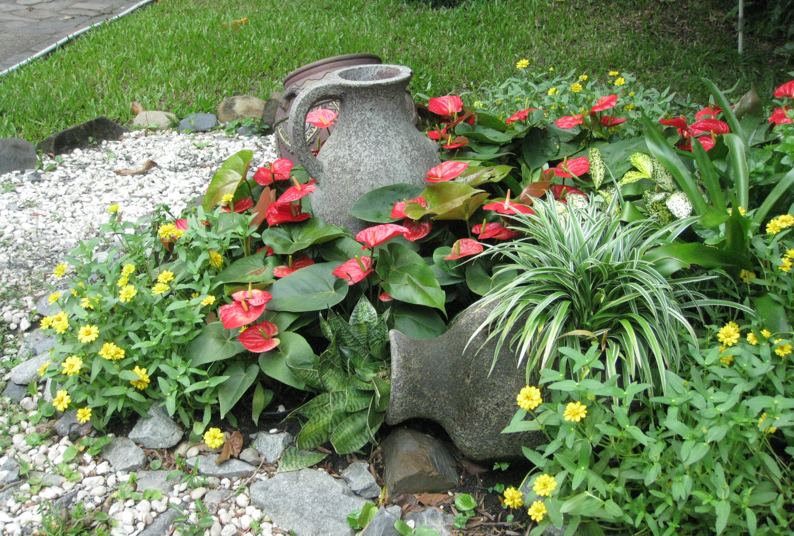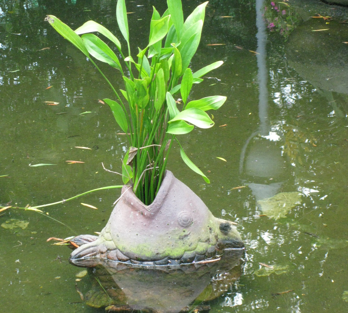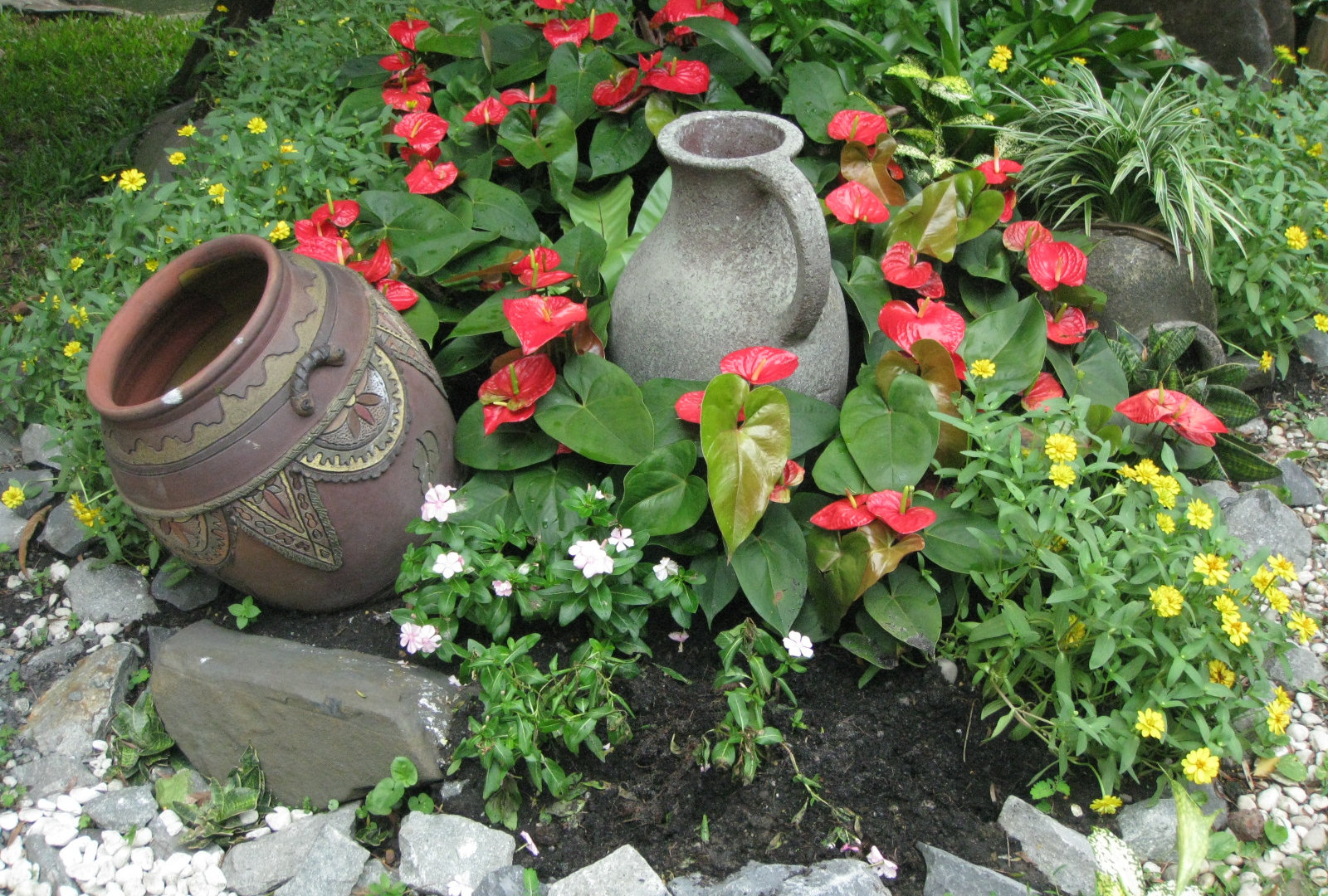 И вот оборотная сторона медали... Такое ощущение, что здесь подрабатывает чокнутая бабка из соседнего подъезда:( Грибок из старого таза, уродливо раскрашенные камни и какающий на клумбе мальчик....
