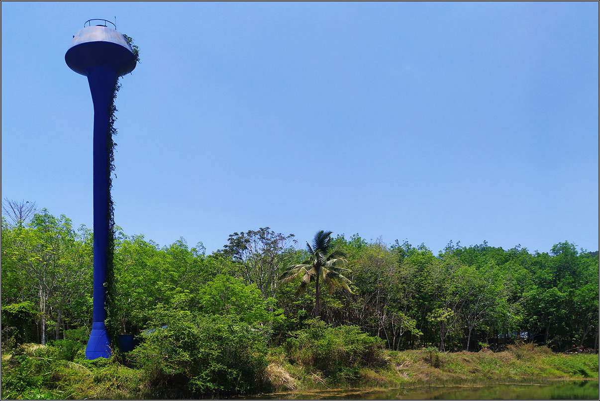 Ровная водная гладь, рыбки плавают в прозрачной воде, а на берегу две высоченные вышки непонятного предназначения. Не, там написано что-то, но по-тайски, так что объяснить, почему их две, и вообще, зачем они на берегу затерянного в джунглях крохотного озерца, я не смогу.