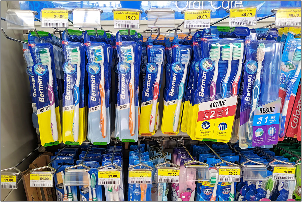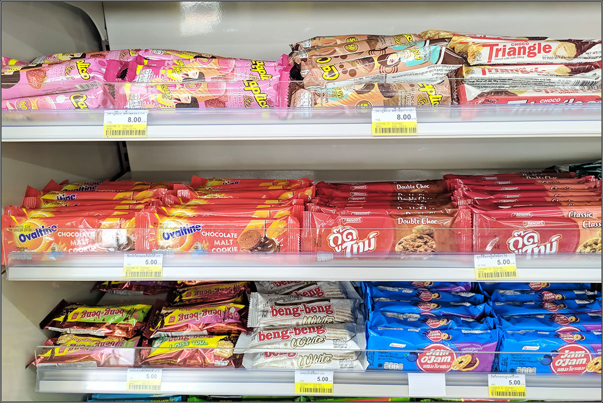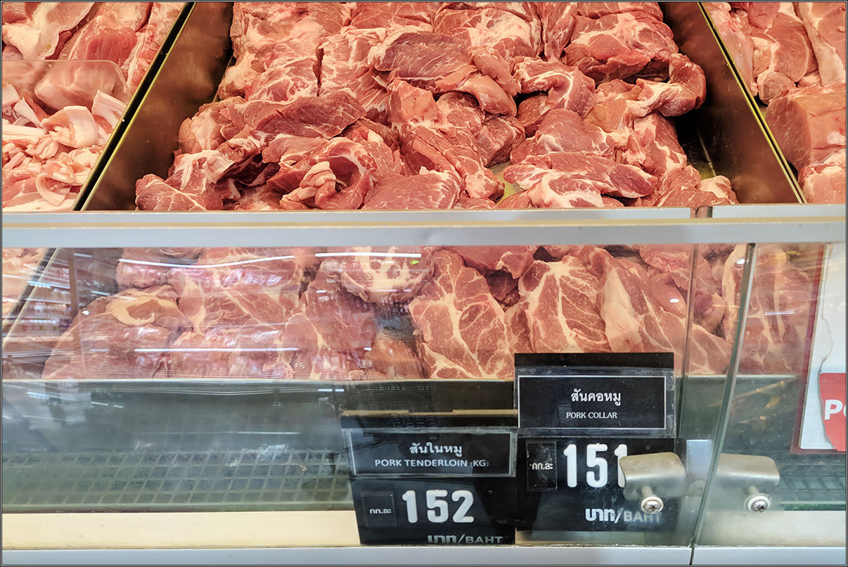 В общем, цены на рынках я тут уже показывал, на футболки по 20 бат за штуку и на манго по 30 бат за кило уже все облизнулись. А теперь покажу несколько ценников из нормальных магазинов, типа 7-11, Tesco или Makro. Откуда какой — сейчас уже не вспомню, конечно, но в целом уровень понятен.