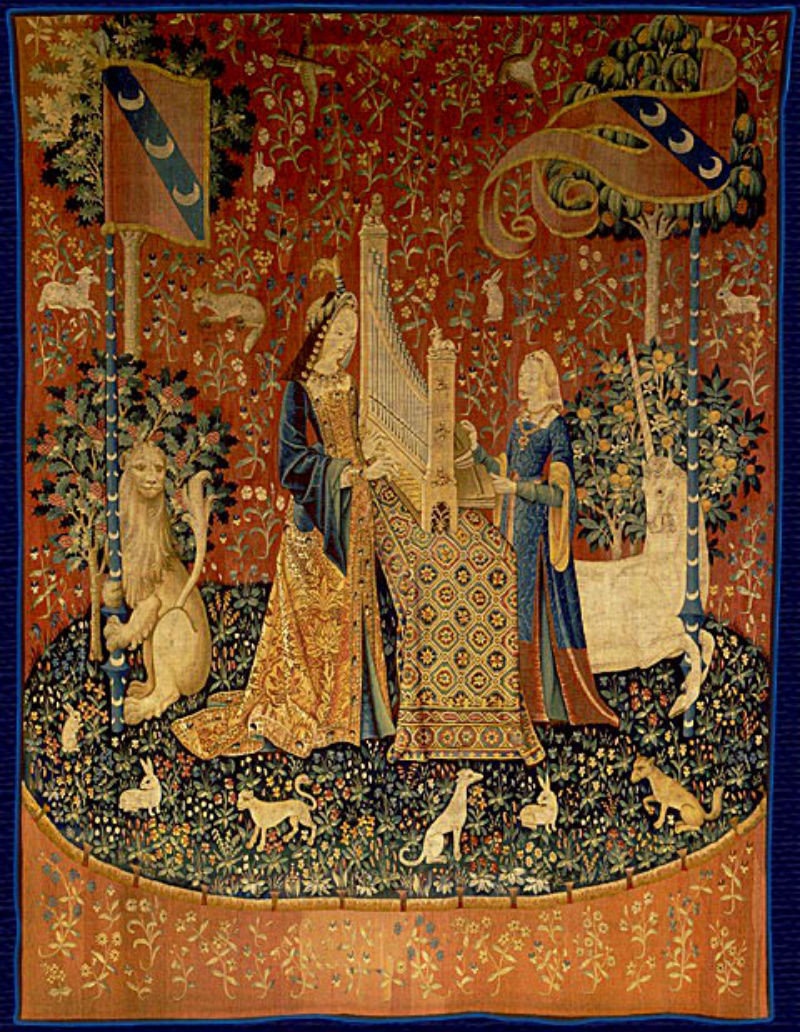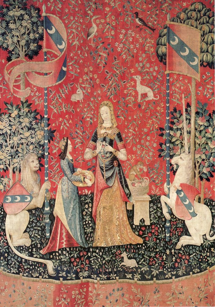 Остальные пять гобеленов символизируют органы чувств. Лично я опят тут вижу след Зизима, очень уже это по турецки: «люблю тебя всем организмом».