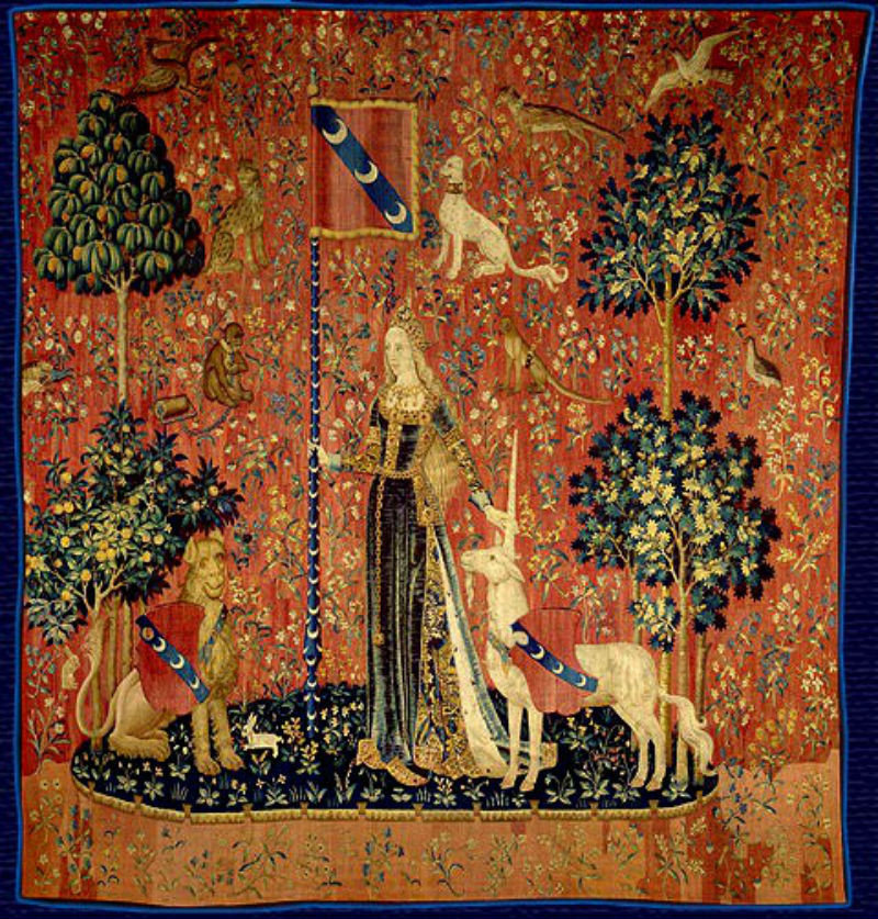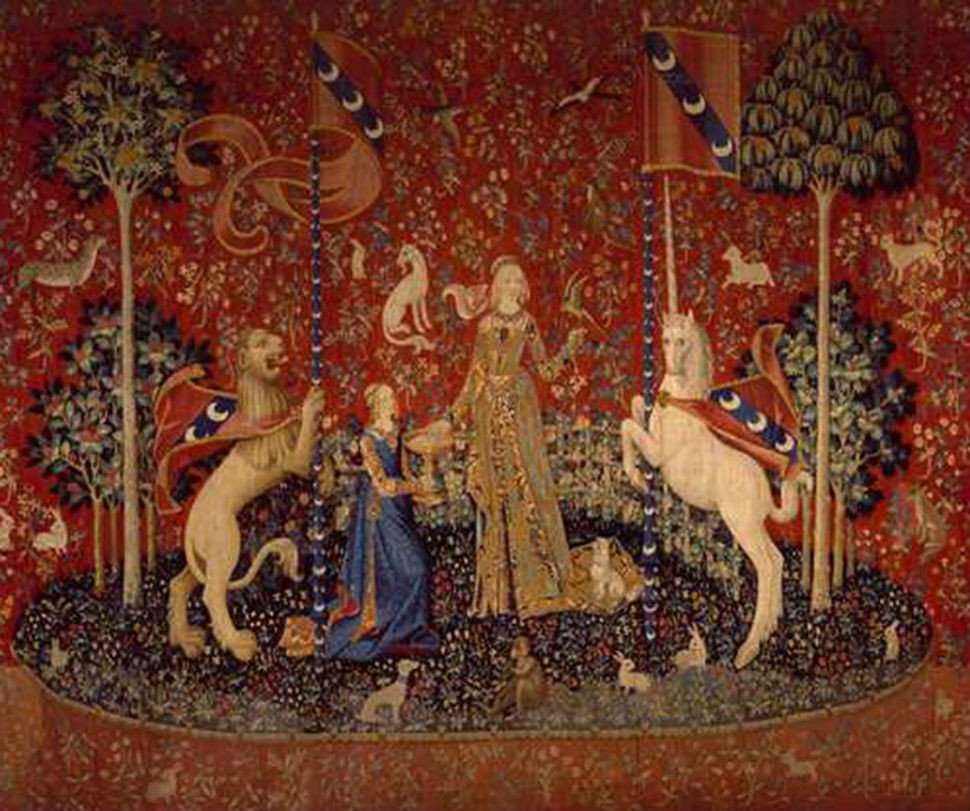 Самая прославленная серия во Франции относится к периоду высокой готики и носит название «Дама с единорогом». В музее Клюни для этого шедевра отведен специально организованный затемненный зал, в котором в форме круговой панорамы демонстрируется серия из шести шпалер.