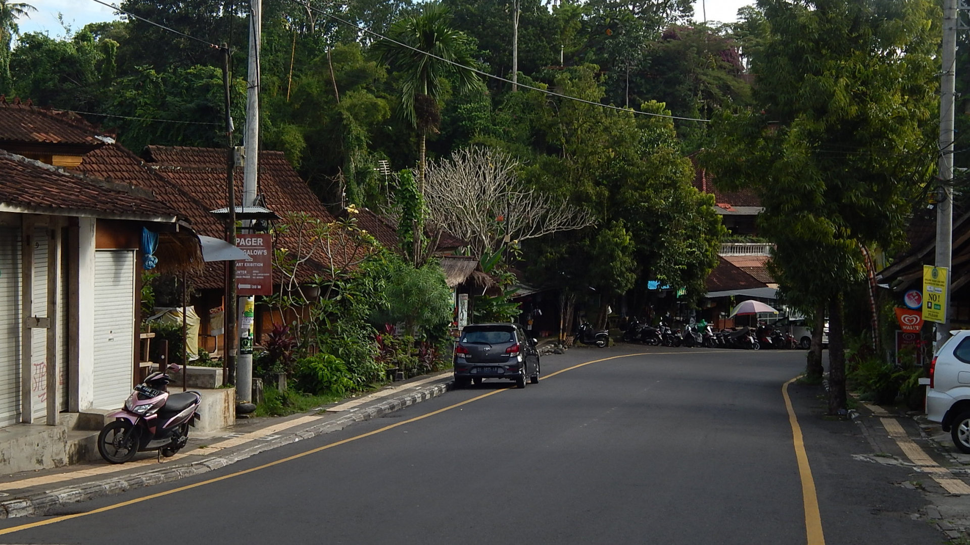 Жизнь на Бали идёт своим чередом. Границы всё ещё закрыты, туристов нет. Сегодня выбралась на прогулку. После восьми дней ливней, байк не захотел заводиться. Пошла пешком. Редкие машины и байки на дорогах, пара открытых магазинчиков одежды, мини-маркет- вот и вся движуха в два часа дня. Такое ощущение, что по городу гуляла я одна. Никогда ещё я не видела пустой Убуд. Настоящий город-призрак.