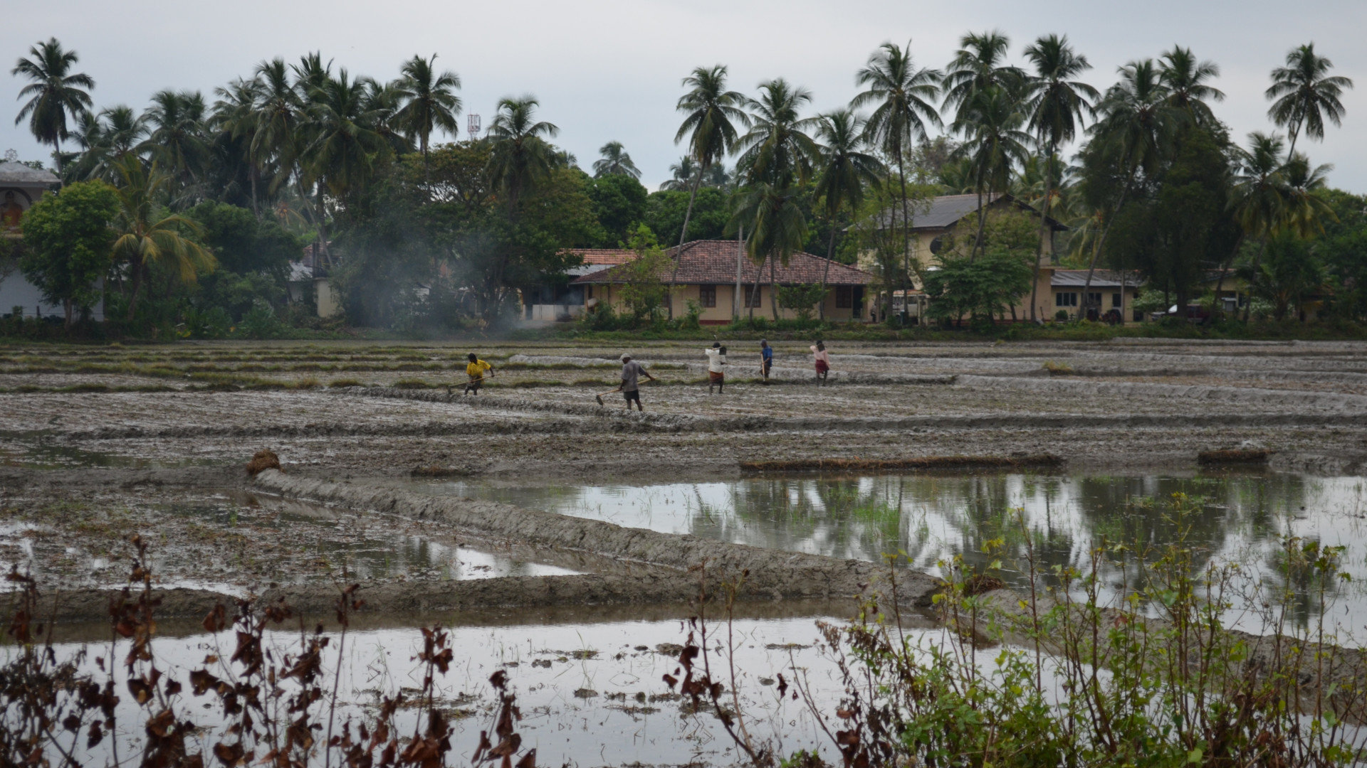 А вот и рисовые поля. Их можно наблюдать по всей Шри Ланке, они в разной степени зрелости, заводненные, пустые, зеленые. То есть как мы поняли, садят на одном участке, собирают на другом и так по кругу, конвейер. Пустые поля — излюбленное место цапель. Наверное, ловят рыбешек или лягушек, ведь столько воды, наверное, обжито всякой живностью. Продолжаем идти куда ведет дорога. Не сказать, что много народа, потом видели и поболее. Но жизнь бьет ключом, у всех дела. Тут мы обнаружили фруктовый рынок и поспешили к нему.