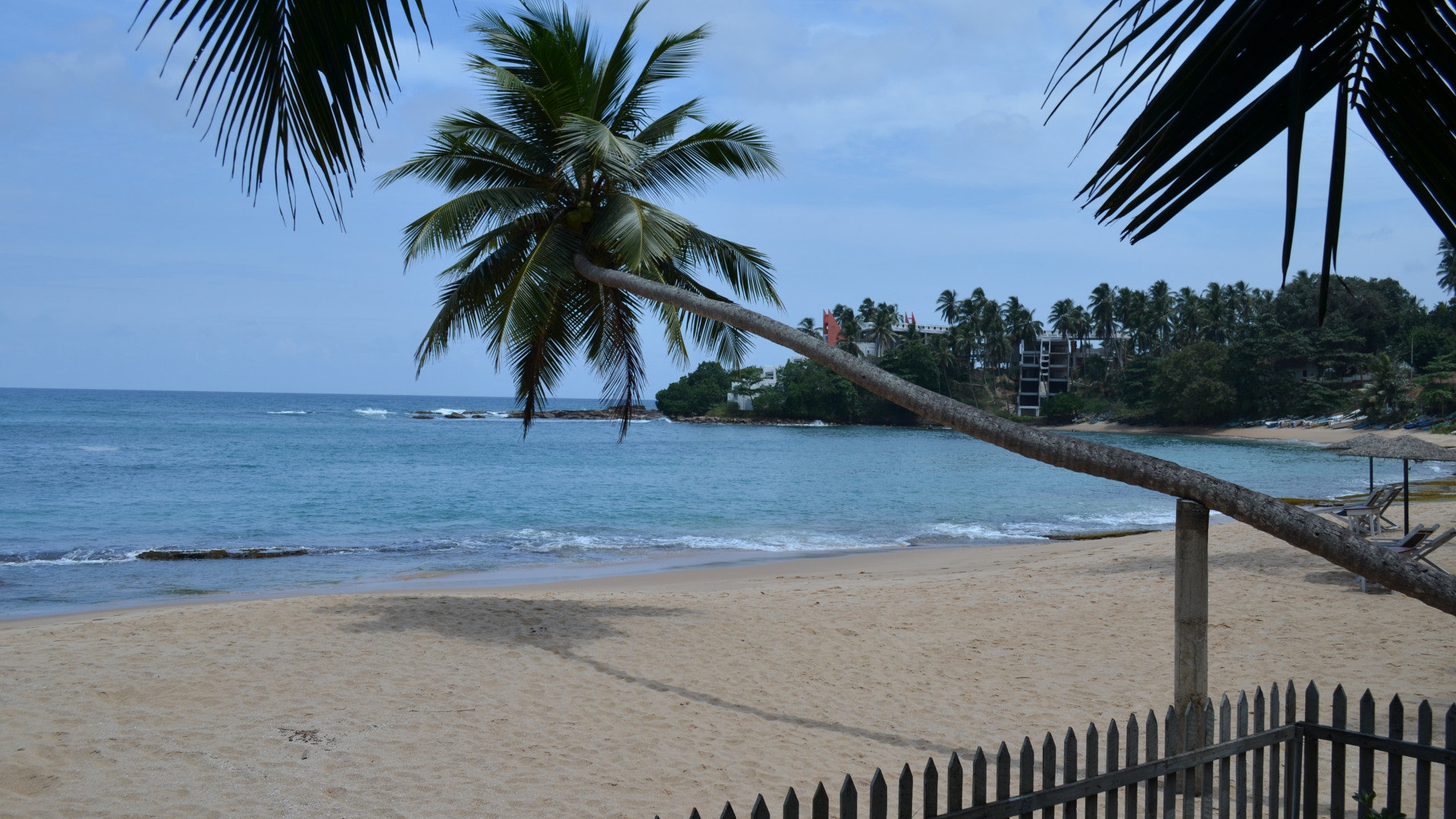 С веранды открывается открыточный вид на океан с пальмой на пляже, склоненной к воде. Выбираем из меню сифуд и жестоко разочаровываемся. Не вкусно… как можно испортить кальмары и креветки? Видимо можно…