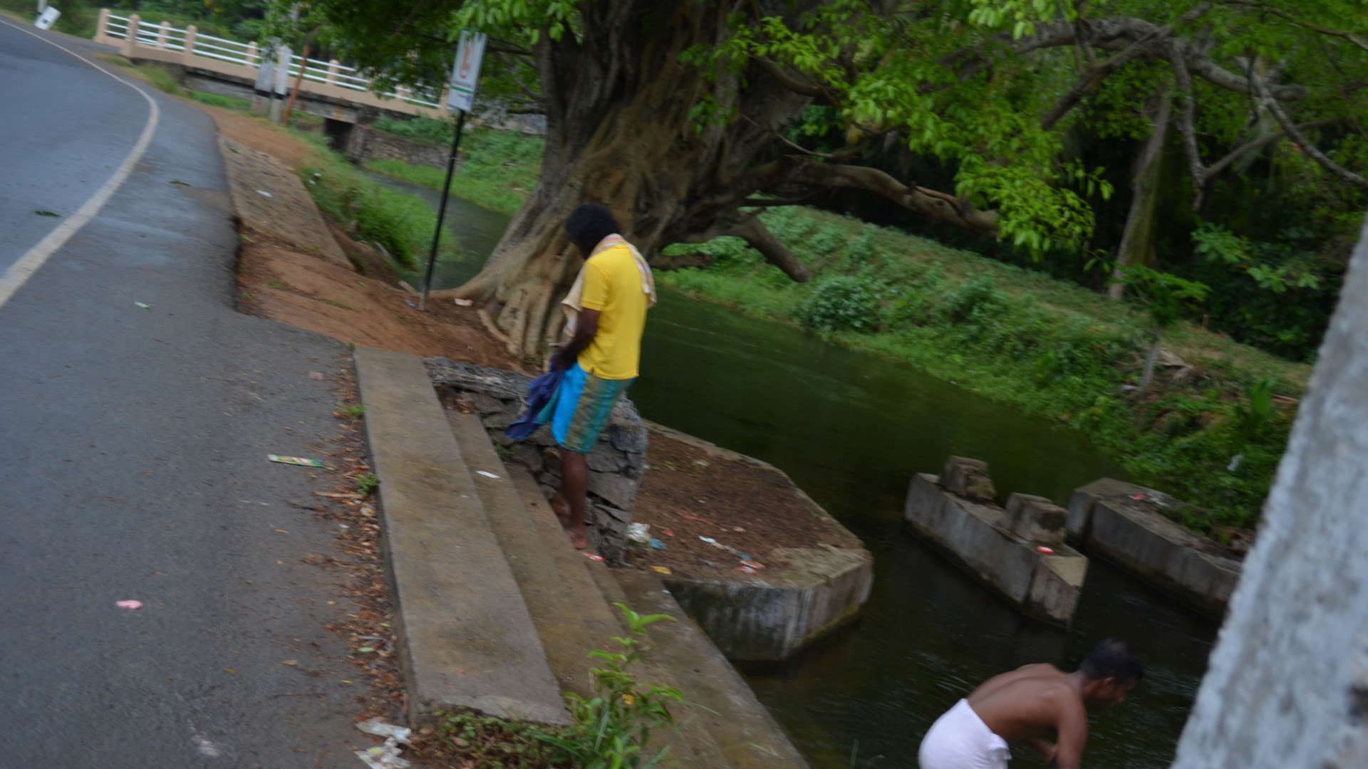 «О как!» — думаю я, оно ведь всё может окрасить, хотя стирает в холодной воде, наверное, всё будет пучком. Закончив с яркими одеждами, в ход пошли темные вещи, синие, они легли третьим слоем в ведро. Ведро оказалось каким-то бездонным, меня поражало то количество вещей, которое туда было утрамбовано. Как проходила стирка и как она закончилось мне не ведомо, ибо дождь ослабил свою силу, и мы пошли дальше в сторону рисовых полей, окружавших всё вокруг. Пройдя немного увидели местную детвору, плавающую в этой водоотводной, а точнее сказать сточной канаве.