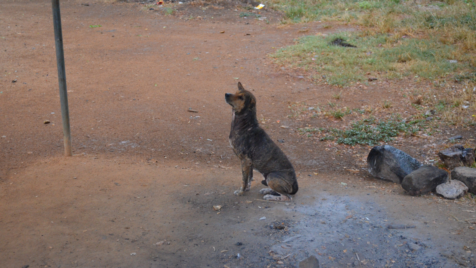 Вернусь к процессу покупки фруктов, во время которого нас накрыло новой порцией ливня. Хотелось папайи, но ее на удивление не оказалось, не дойдя рынок до конца, пришлось укрываться под навесом. Торговцы ловко закрыли все прилавки пленкой, а сами попрятались. Под навес спряталась и собачка.