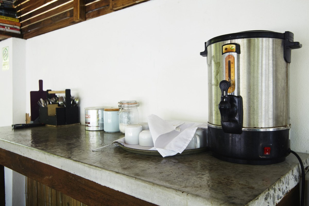 Плюс, там оказалось довольно много дополнительных плюсов: бесплатный чай и кофе целый день, разнообразные, вкусные и сытные завтраки, пляжные полотенца по первому требованию, маски, трубки и ласты для снорклинга, зонтики от дождя или солнца, прокат велосипедов, а главное — отличный персонал, готовый всегда помочь, посоветовать и объяснить что угодно из жизни острова. Уборка и смена белья раз в три дня или по требованию, две минуты до порта пешком, лучший на острове ресторан европейской кухни, кран с питьевой водой...