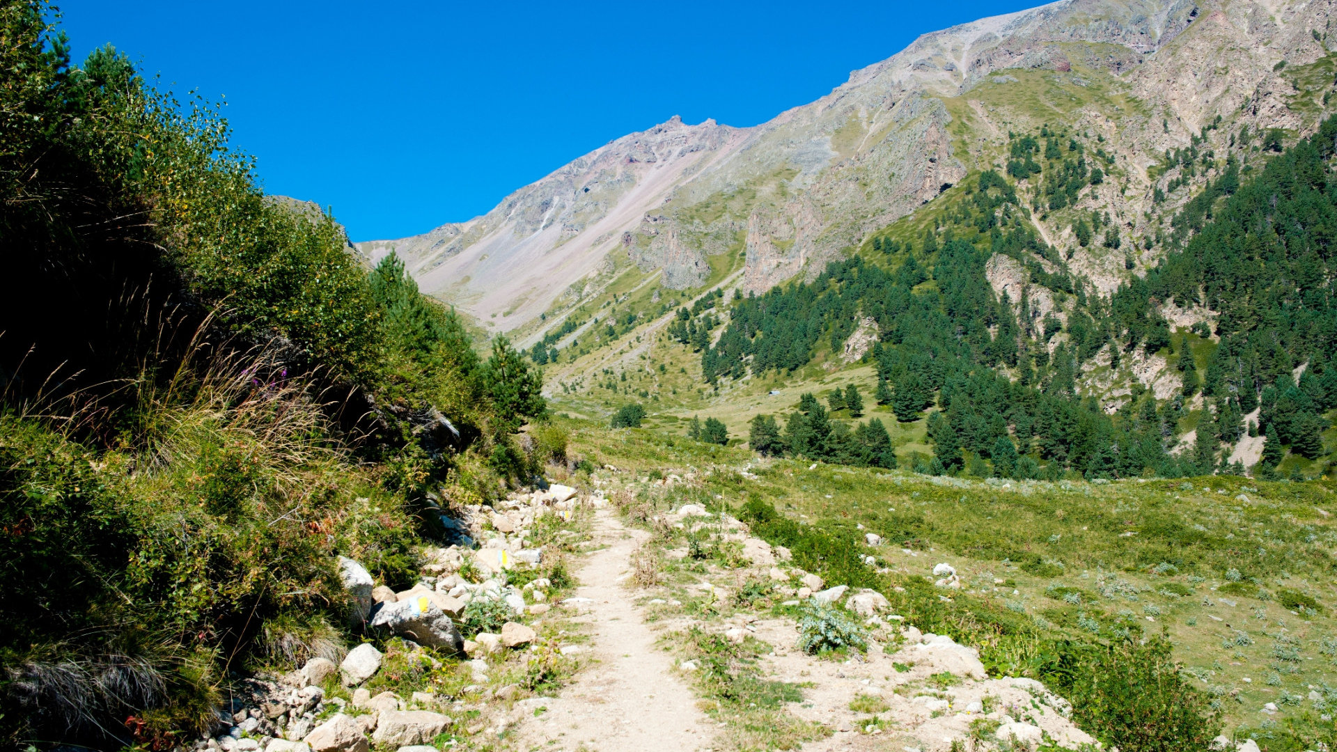 Тропа начинается сразу за последним домом наверху деревни, до куда меня подвезли жители как раз этого самого дома. Хорошая новость — вся тропа промаркирована так, что даже мне на ней не потеряться. Желтые с голубым полоски на камнях рисовали фанатики желтых с голубым полосок ) Они там чуть ли ни на каждом камне, а иногда и по два раза.