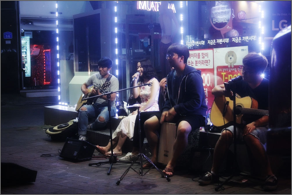 В Сеуле довольно много ночной жизни — целые улицы отведены под клубы, рестораны и прочие тусовки. Уличные музыканты, толпы молодежи, туц-туц из полуоткрытых дверей, дешевый алкоголь и очень дорогие сигареты :)