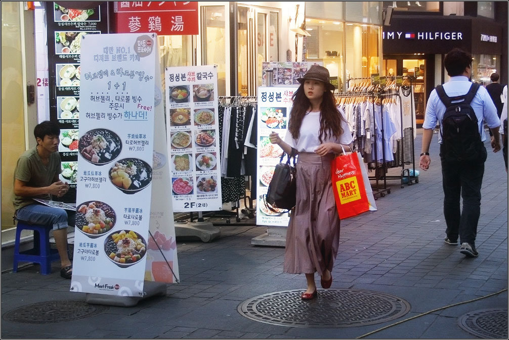 В Сеуле люди на улицах страшно боятся быть сфотографированными — стоит им увидеть камеру, начинают закрываться руками. Приходится снимать «от пуза», чтобы не привлекать внимания.