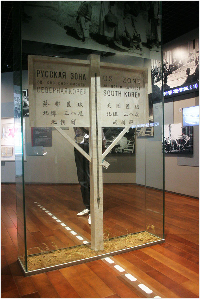 В музее — старый плакат 1945 года, разделивший Корею на Юг и Север.