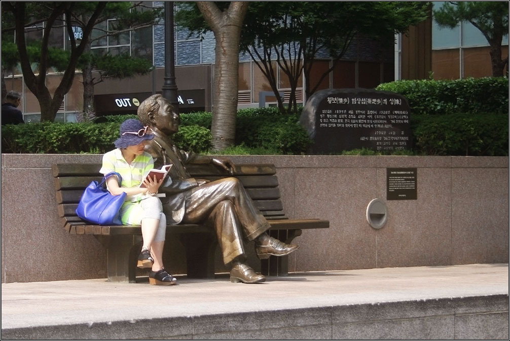 Памятник местному Кириллу и Мефодию — изобретатель корейского алфавита. Справа на постаменте — именно он.