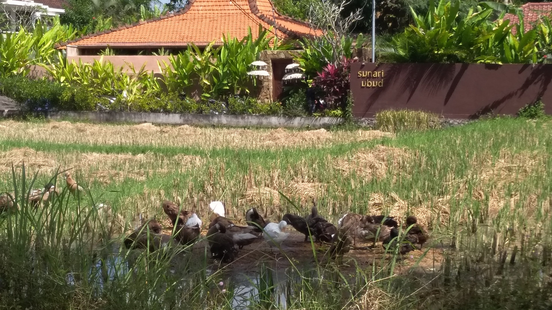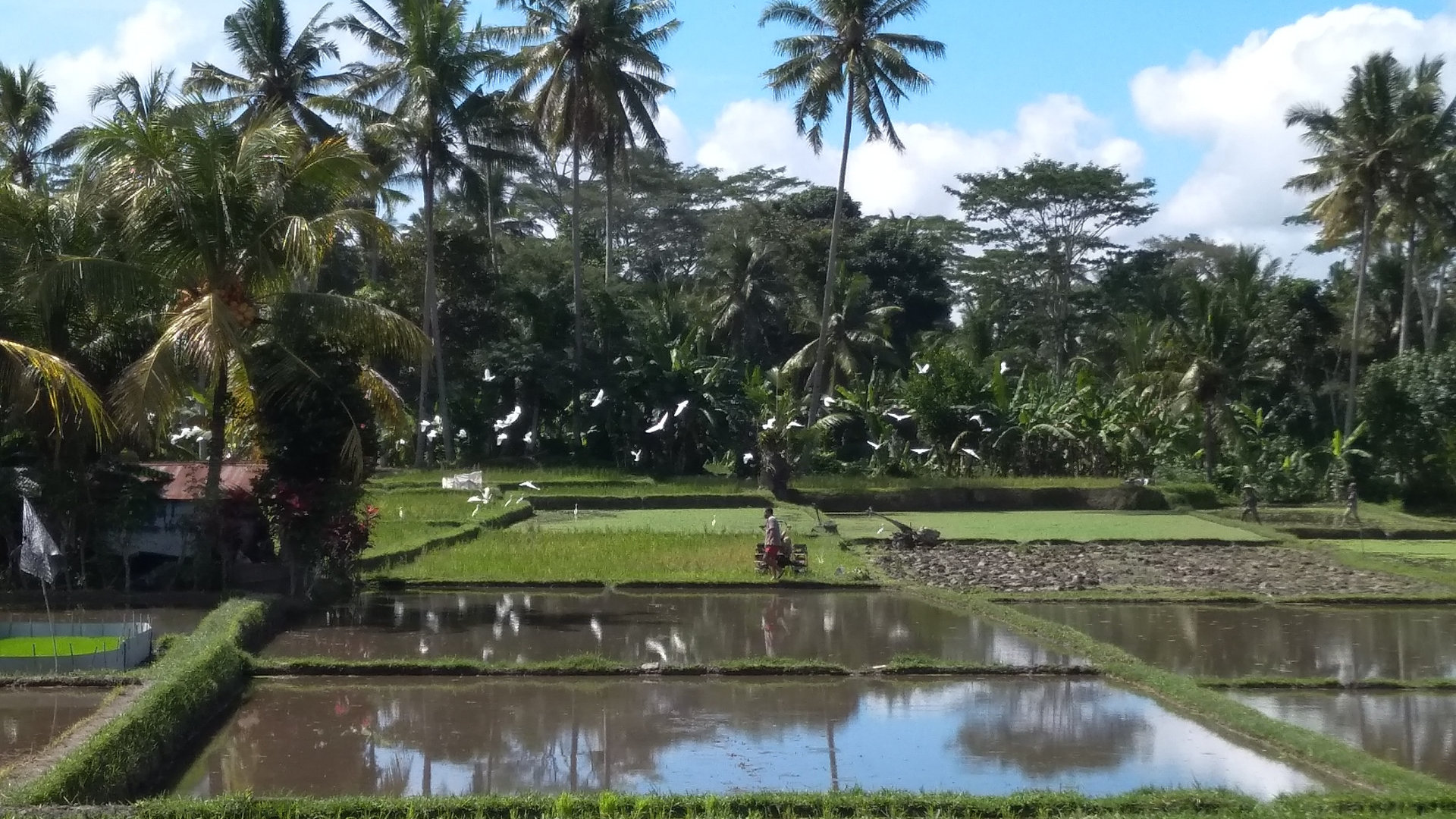 Стала фотографировать. Балийка обернулась. Я внутренне приготовилась к тому, что меня сейчас пошлют далеко и надолго. Я же русская- знаю исход подобной ситуации, будь она в России. Но нет: тётка улыбнулась мне и помахала рукой. Я тоже помахала и ничего не придумала умнее, как спросить:"Как дела?" Про себя же я порадовалась, что мы в России на огородах сажаем только картошку, а не рис.