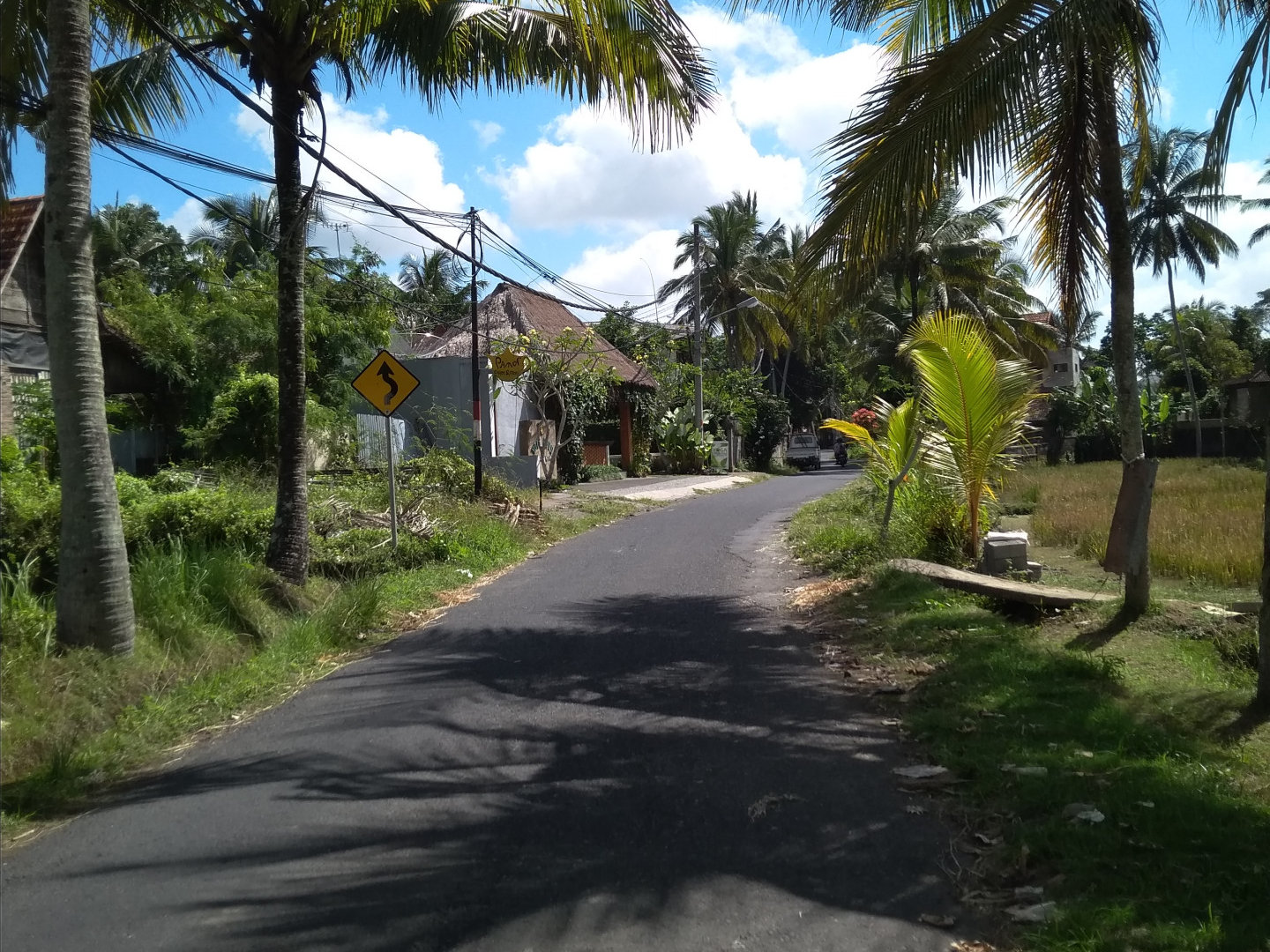Дорога ровная и красивая. Вокруг домики, утопающие в зелени и рисовые поля.