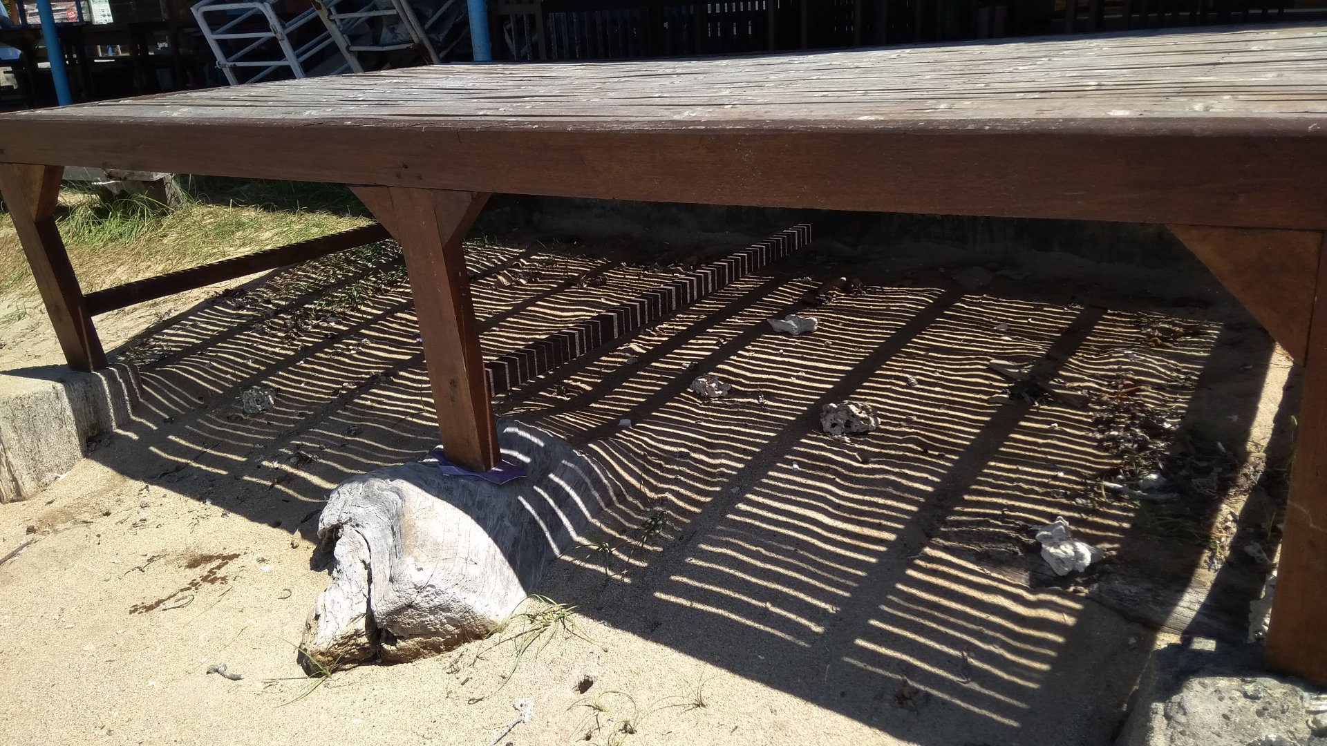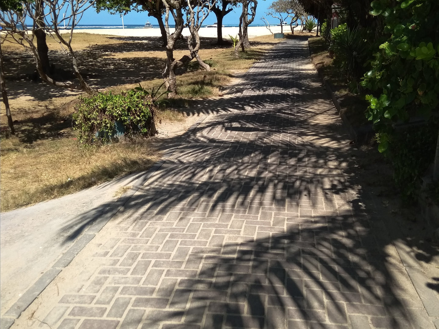 Быстро расправившись с желтолицым и попив чаю, я отправилась на пляж. Дорожка до пляжа покрыта причудливыми, ажурными тенями.